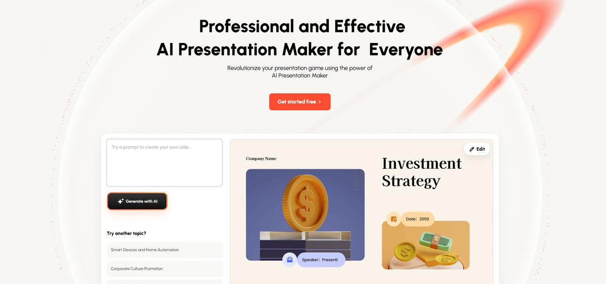④ PresentiPresenti是一款专注于将创意和文档快速转化为专业演示文稿的AI智能工具。它以其强大的文档转换能力和自动化的设计优化功能,在众多AI PPT软件中脱颖而出。Presenti的核心理念是“化繁为简”,旨在让每一位用户,无论是否具备设计背景,都能够以极高的效率,将零散的想法或现有的文档,迅速打造成结构清晰、视觉精美的演示作品,从而将更多精力聚焦于内容本身。