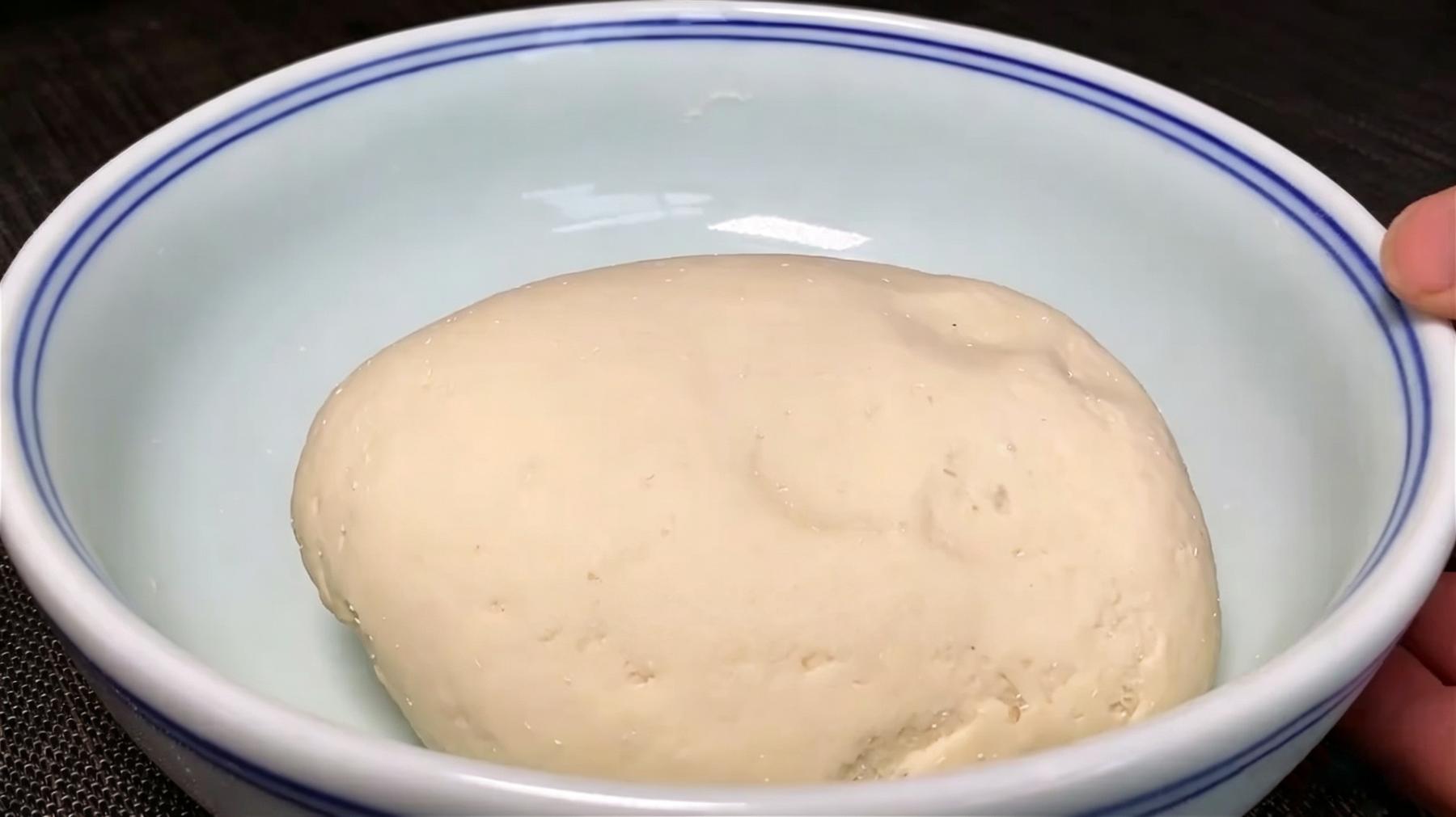1️⃣和面醒面:一斤面粉里加入5克酵母,再分次倒入250毫升温水(约30-40℃,手背摸上去不烫),边倒边搅拌成絮状,然后揉成软硬适中的光滑面团。盖上保鲜膜或湿布,醒面20分钟,让面筋松弛,后面还要二次醒发,所以不用等它完全发到两倍大。