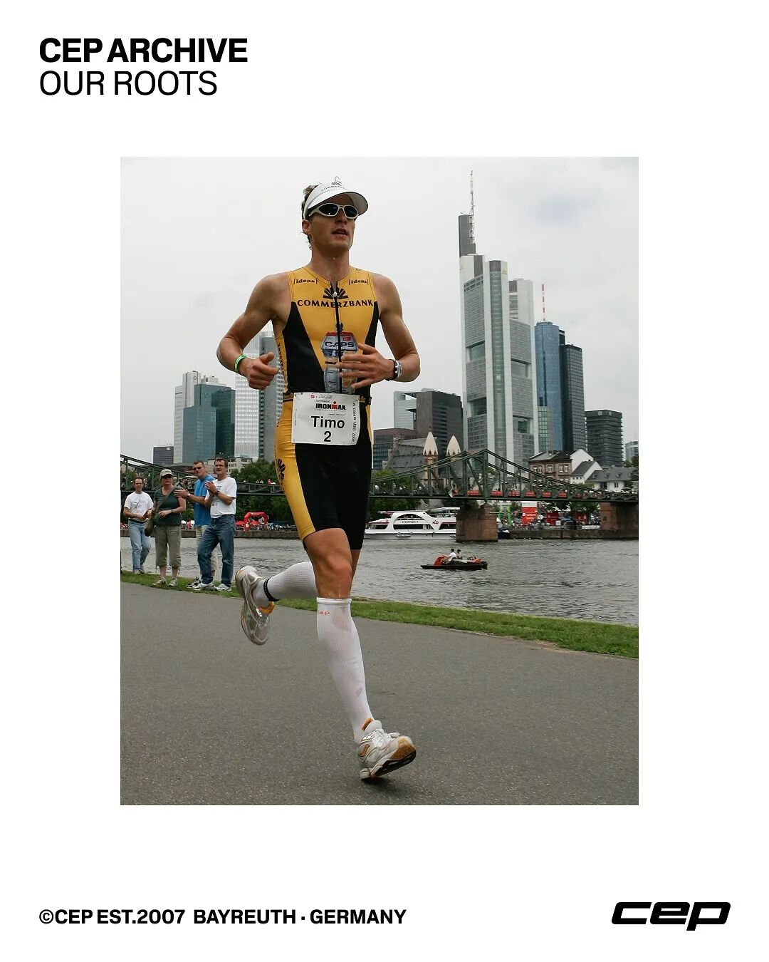 彼时,跑步压缩袜还是个小众话题,更不用说在比赛中穿着及膝压缩袜。而 CEP 在 2007 年正式作为 medi 的运动压缩、袜子等产品线推出,同年铁三运动员 Timo Bracht 穿着 CEP 压缩袜刷新赛道纪录的事件让品牌一战成名。