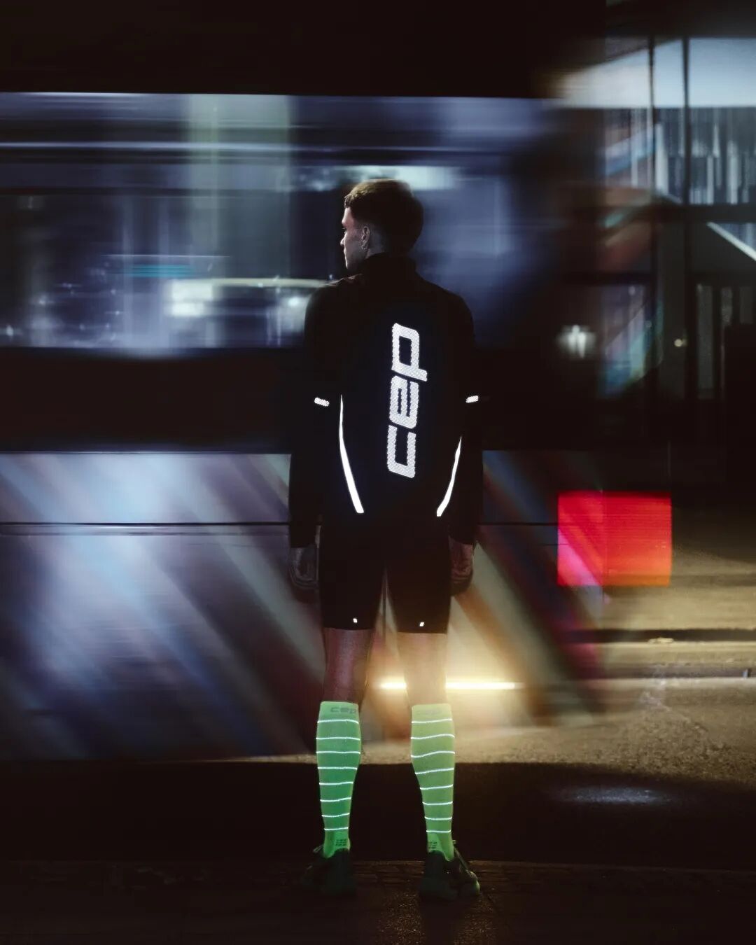 在 CEP 最新的 2025 秋冬系列中,也展现出一种手术刀式的医疗精准。其中展示出的一件 CEP Pro Run 3L 夹克在实验室模拟恶劣天气下测试,所有接缝均采用粘合设计,加高的衣领和可调节的风帽为恶劣天气提供结构防护。看似简单的夹克不仅涵盖防风雨性能,更兼顾灵活性和安全性。