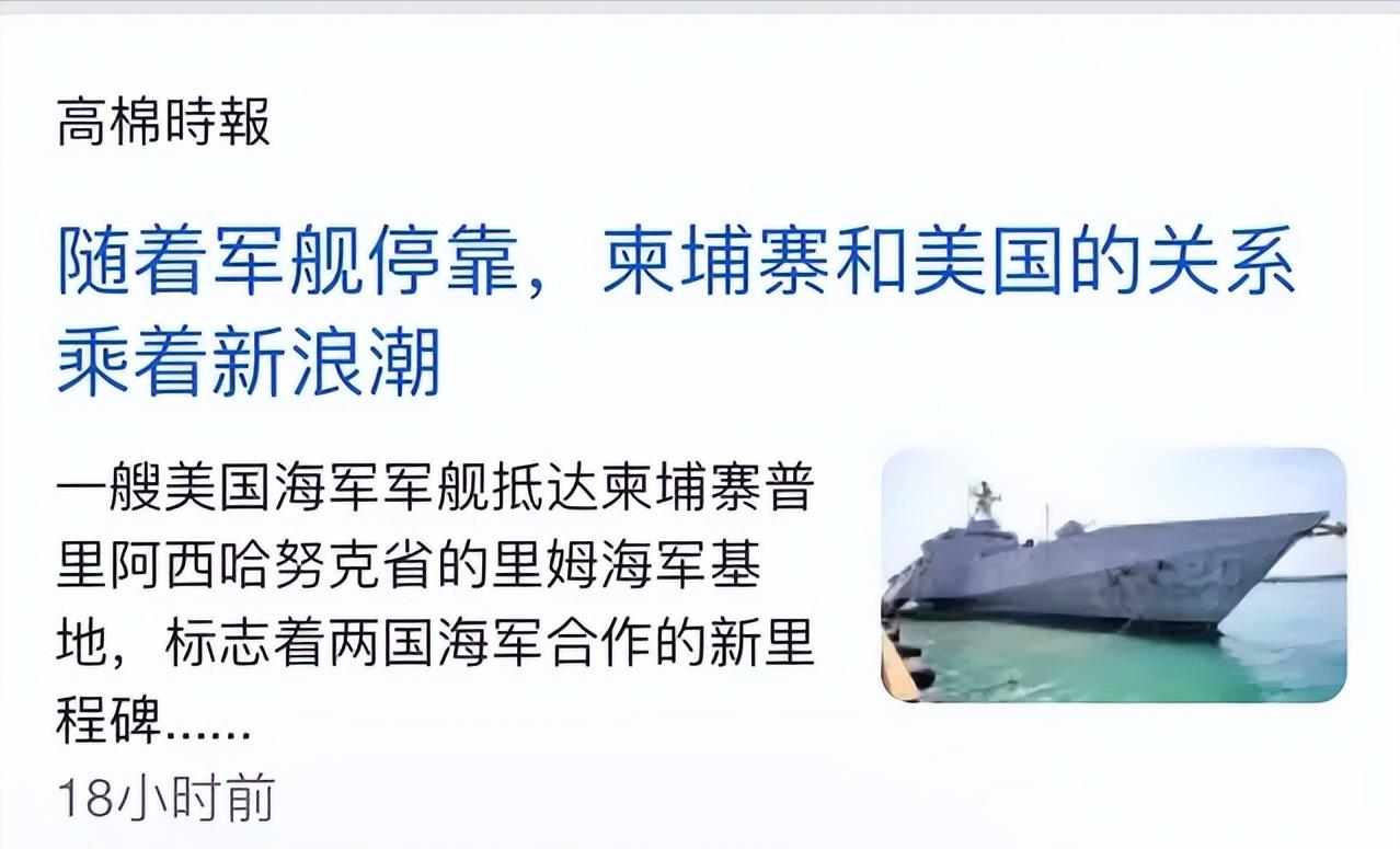有三个迹象,能证明这个观点。第一个迹象是:目前美国军舰正访问柬埔寨。