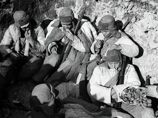 为了保持行动的隐蔽性,战士们即使饿到肚子咕咕叫,也只能咬着冰冷坚硬的炒面充饥,那炒面混杂着冰雪的味道,咽下去时能剌得喉咙生疼。
