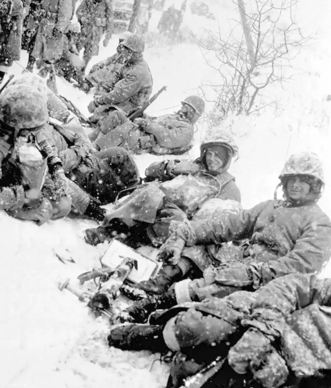为了避免暴露目标,不被美军的侦察机发现,部队严格规定禁止燃起火堆取暖,战士们只能在雪地上挖一个浅浅的雪坑,几个人挤在一起,用彼此的体温相互取暖。