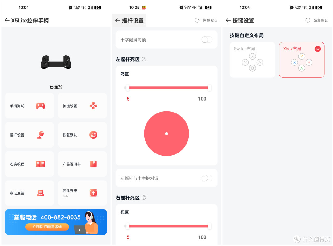 如果是安卓端、苹果端原生支持手柄的游戏,手机装上盖世小鸡 X5 Lite 手柄就能直接玩,非常方便。通过 APP,玩家可以对手柄进行全面测试,了解各个按键、摇杆、扳机的工作状态是否正常。同时,还能对按键、摇杆进行详细的参数设置,例如调整摇杆的灵敏度、键位布局等,从而让手柄的操控更加贴合自己的手感习惯。
