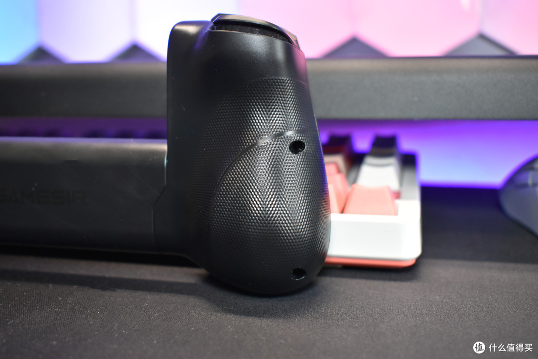 与手掌接触的部分运用 3D 激光网格纹,不仅增加了摩擦力,让长时间握持也不会滑手,而且这种纹理还具有一定的美观性。