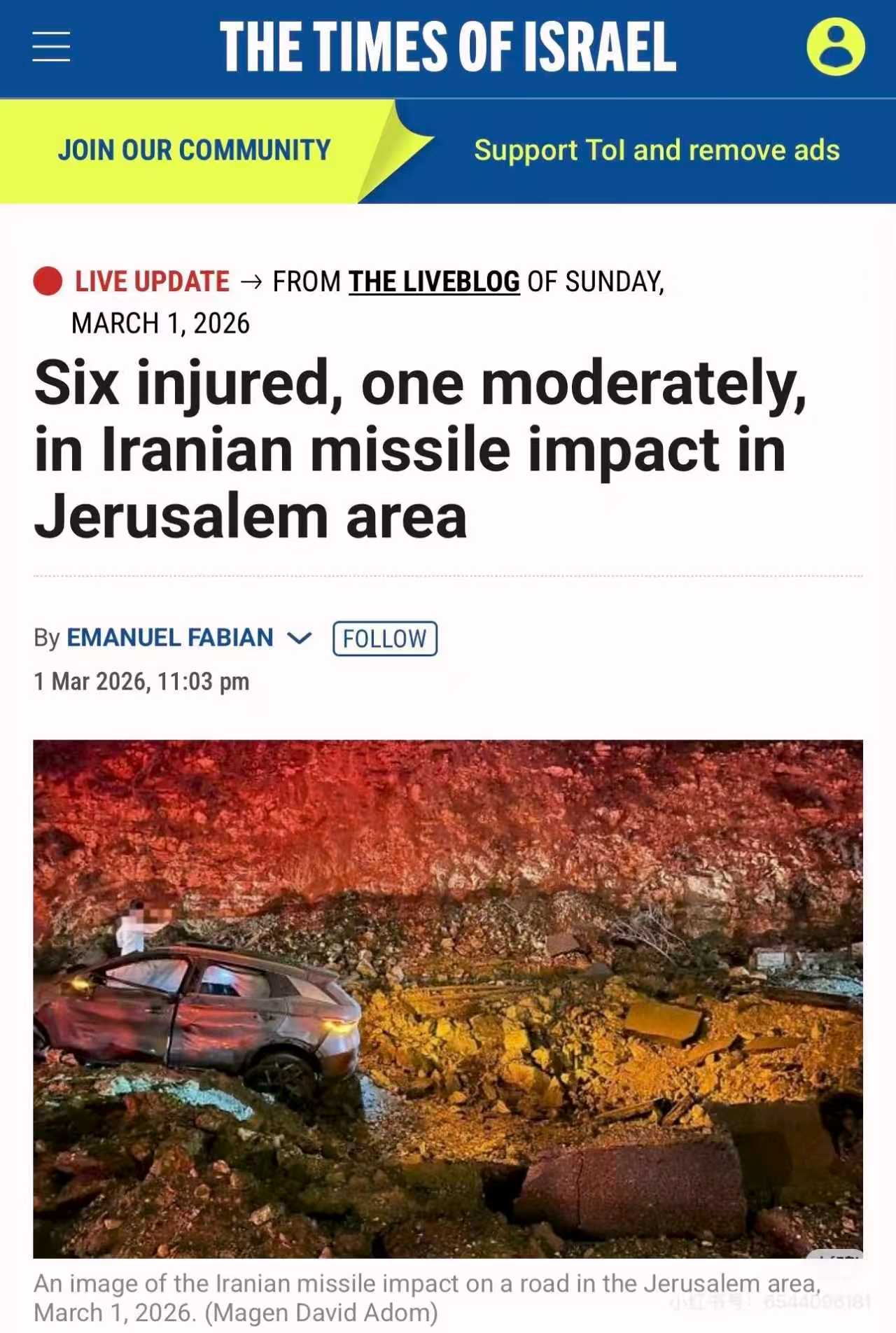 我天,刚刚看到一个新闻,耶路撒冷周边发生了一次爆炸,把路面都炸出了大坑。
