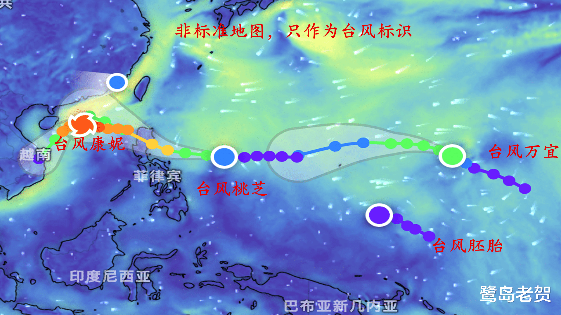 三台风共舞,24号台风万宜,23号台风桃芝趋于华南沿海