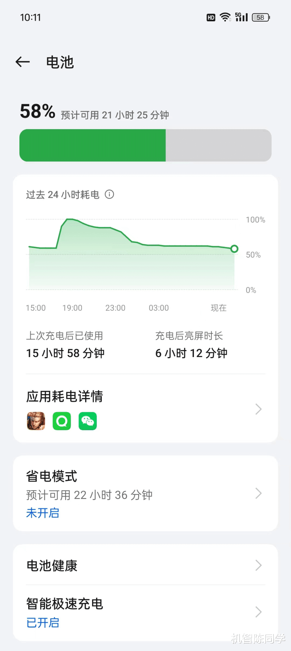 今天,一加CEO李杰、知名数码博主(数码闲聊站)分享了一加Ace 3V的续航截图。其中李杰公布的续航截图来看,亮屏时间6小时后,剩余电量仍有58%,而且通过截图信息能看出,使用场景的网络应该是WiFi、数据交替,而且从应用耗电详情(王者、微信)来看,这算得上是中度使用。