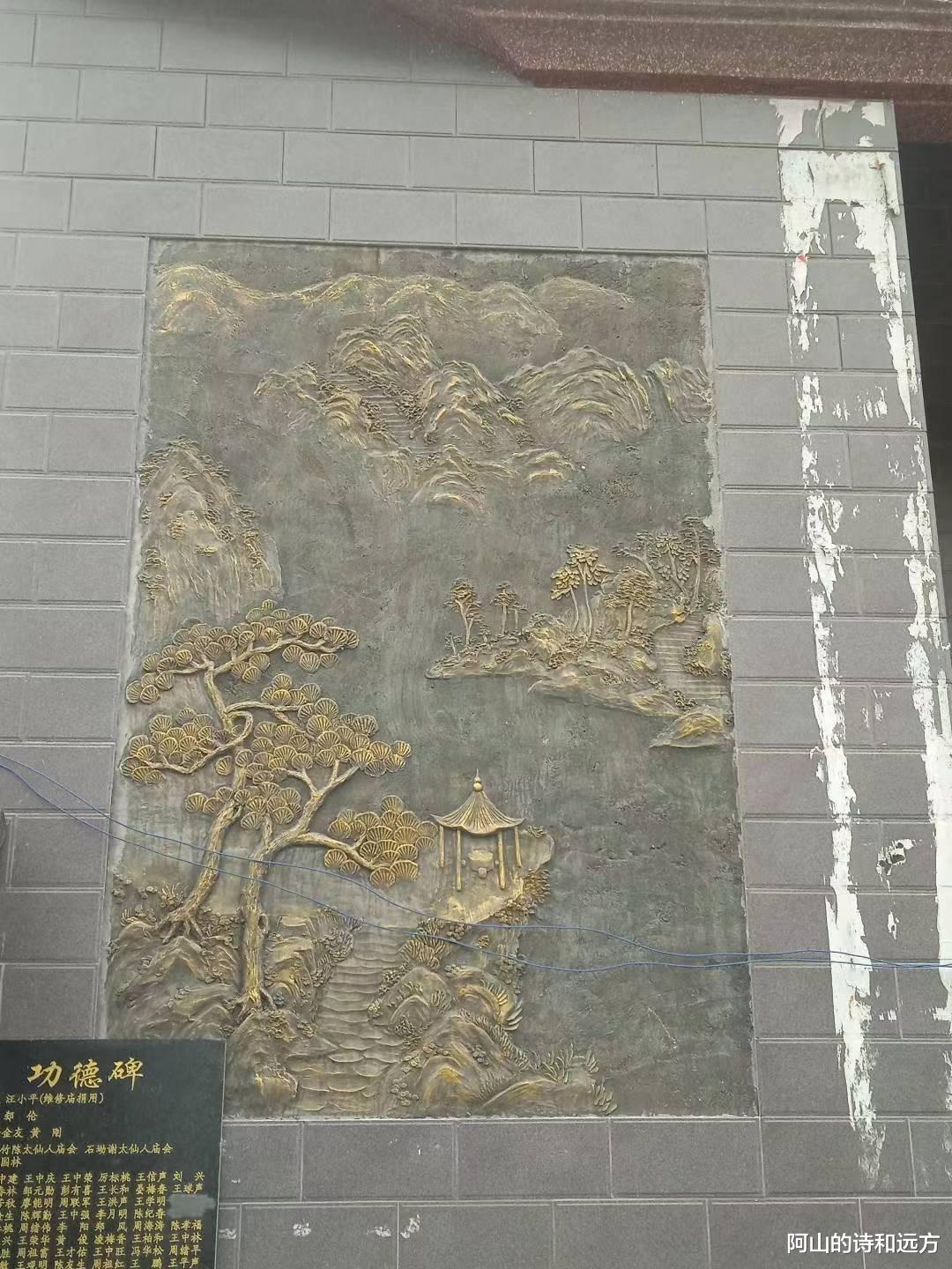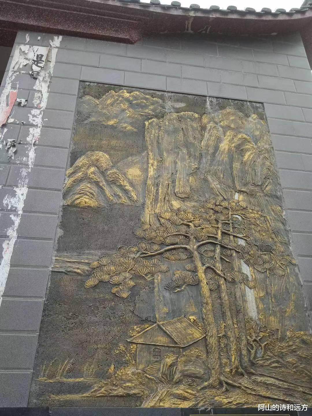 外墙上的两幅浮雕作品倒是很有味道的。一幅画的是千岩万壑,松涛阵阵,岩边建有一栋瓦房,象征松柏长青,家族瓜瓞绵延。另一幅画的是崇山峻岭,山路弯弯,草木茂盛,鸟语花香,象征人生漫长,难免坎坷曲折,只要信心满怀,总会峰回路转。