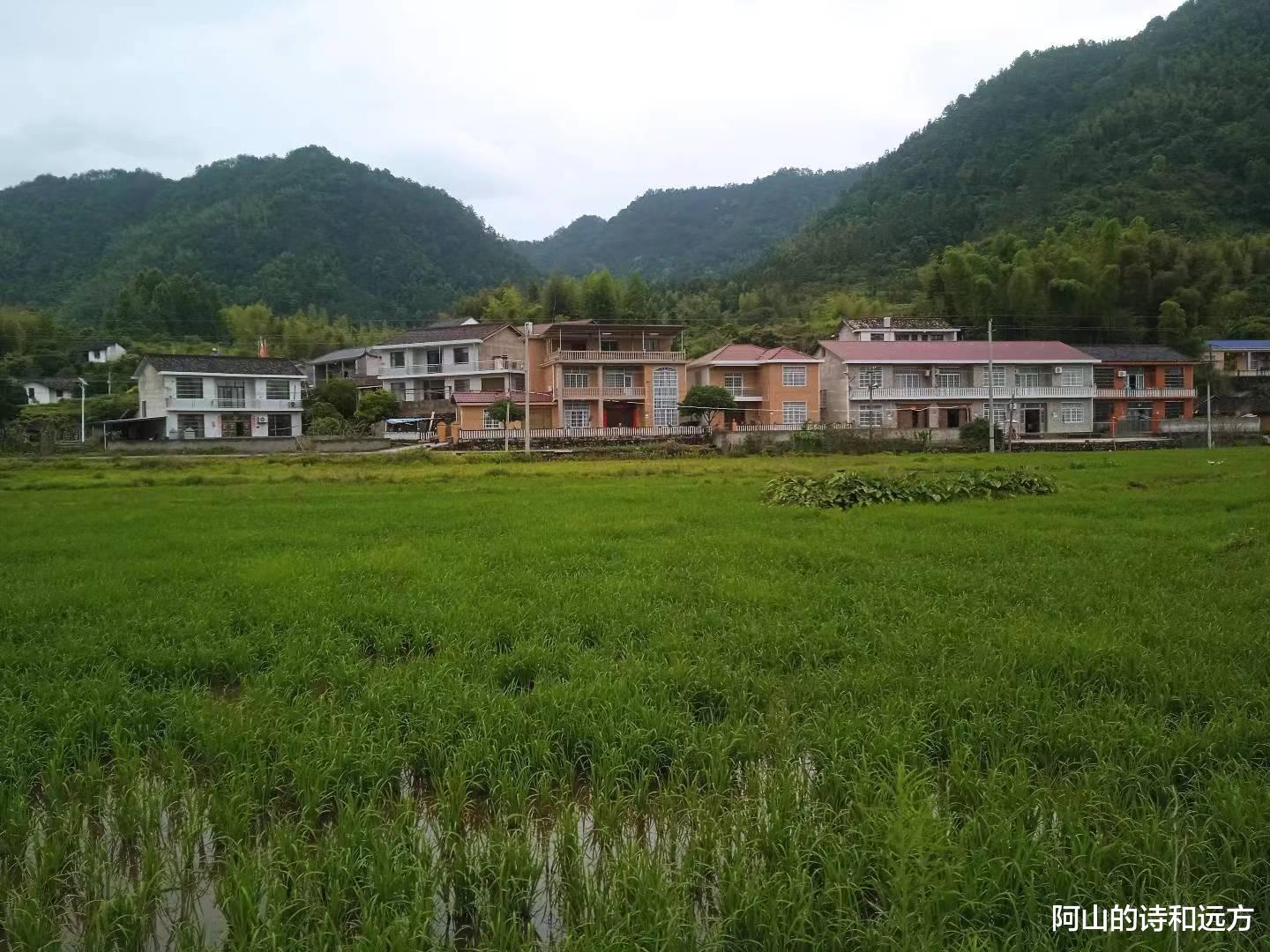 十多户人家的门口是一大片秧田,人家的背后是不高的青山。