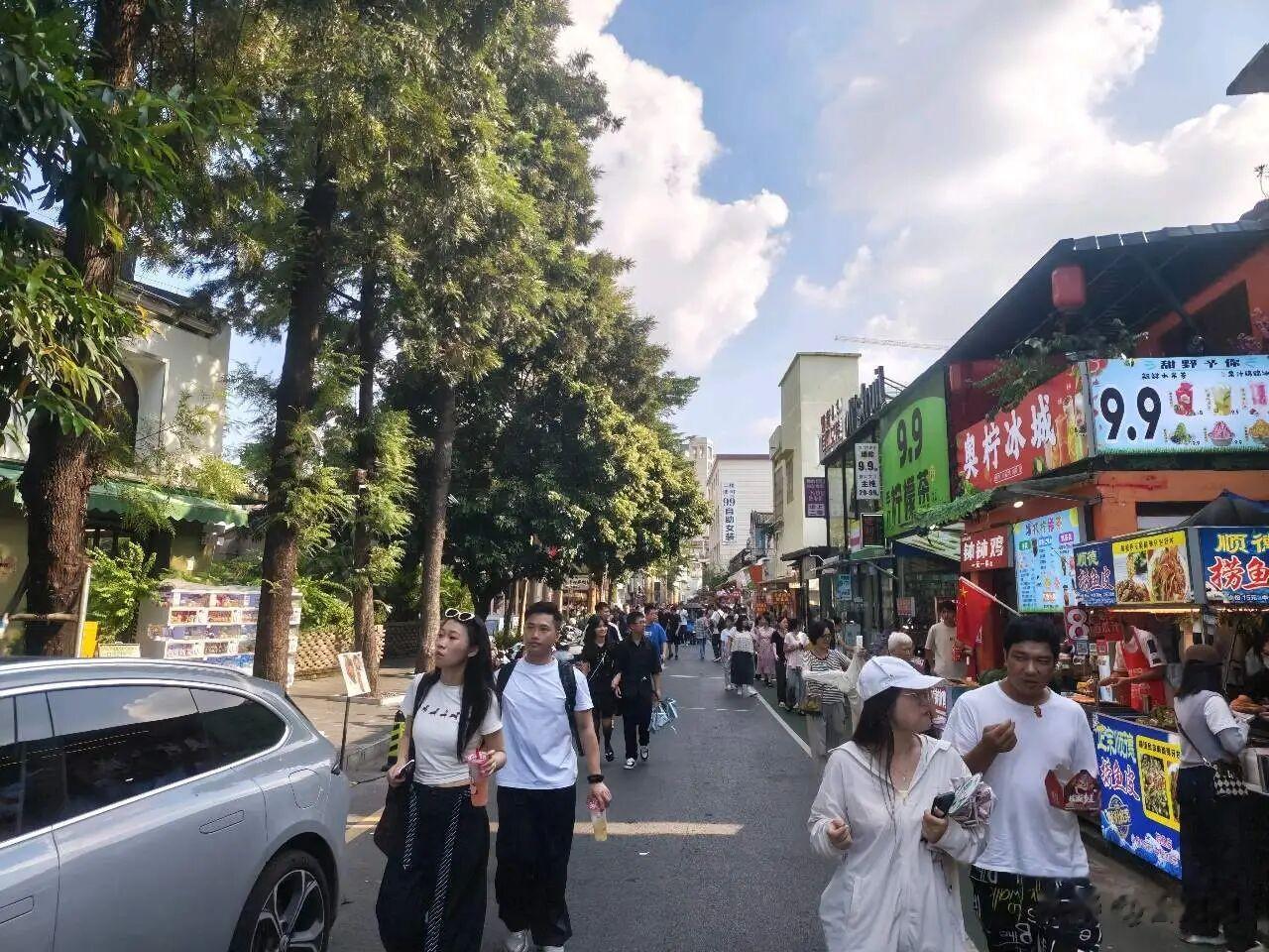 码头对面是商业街区,还有一条三百米的小吃街,我们的午餐就是在这里吃点小食解决的。