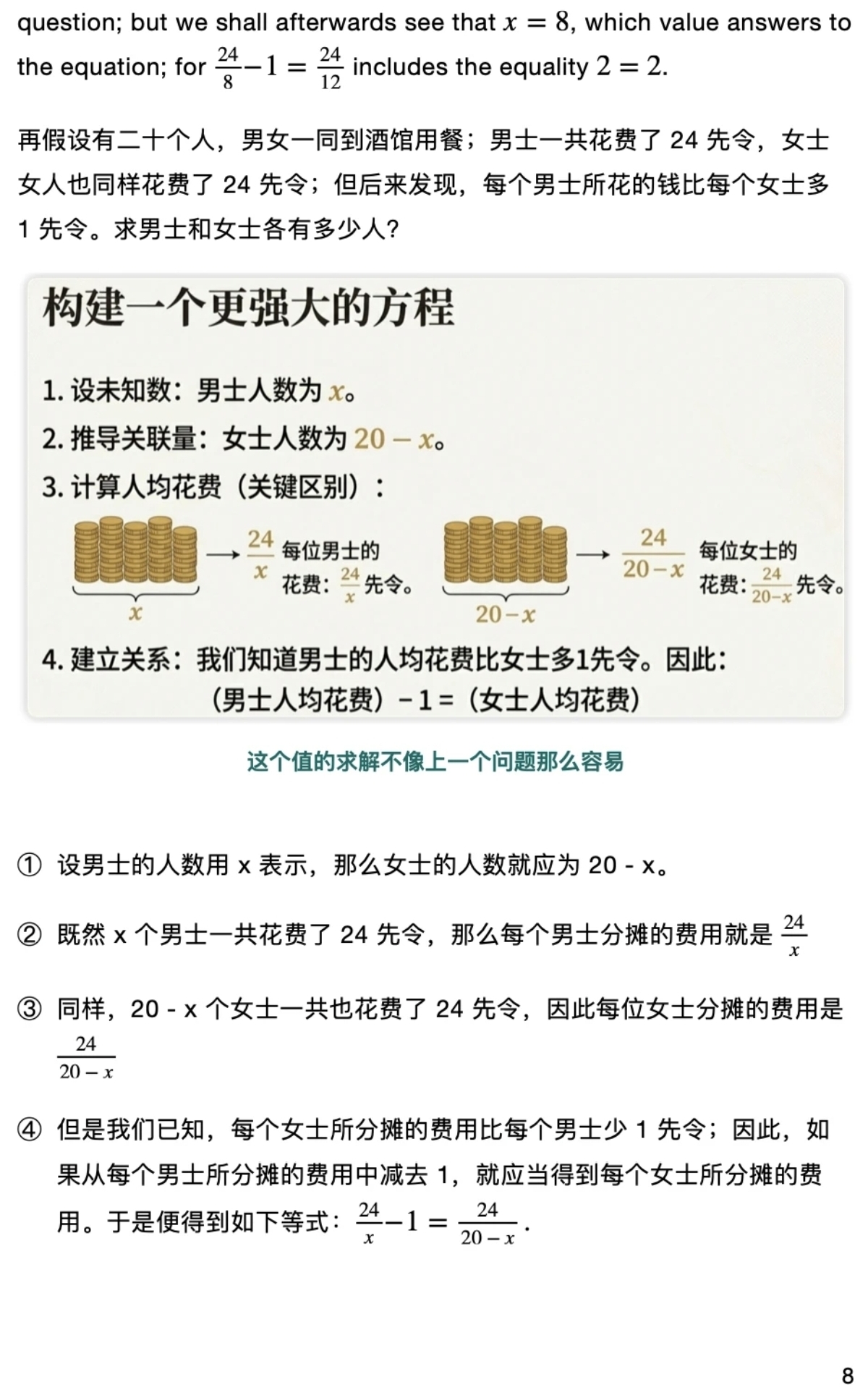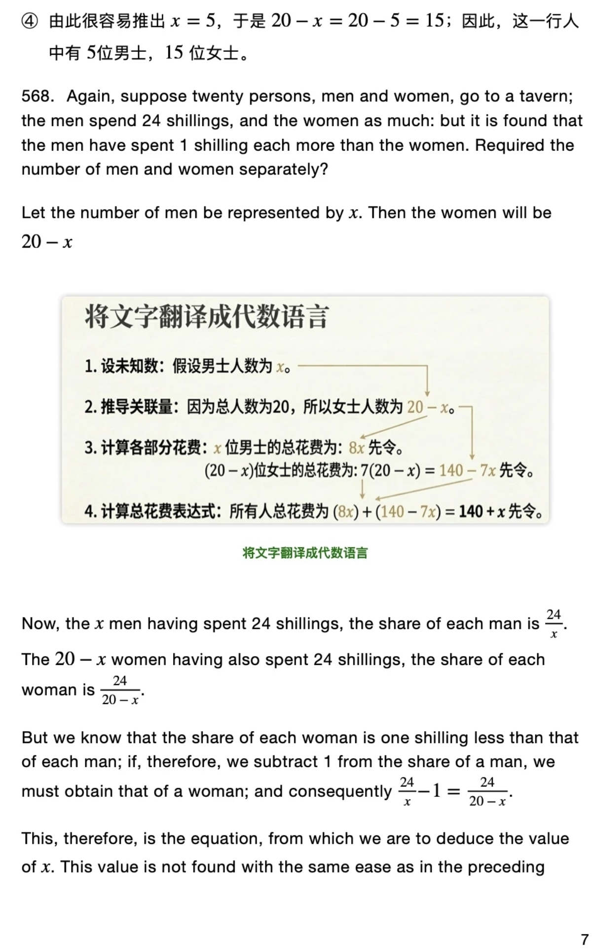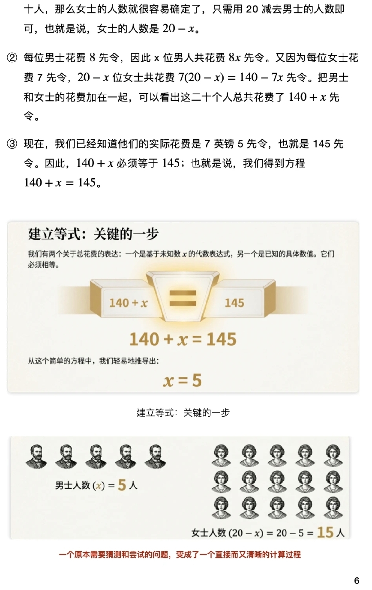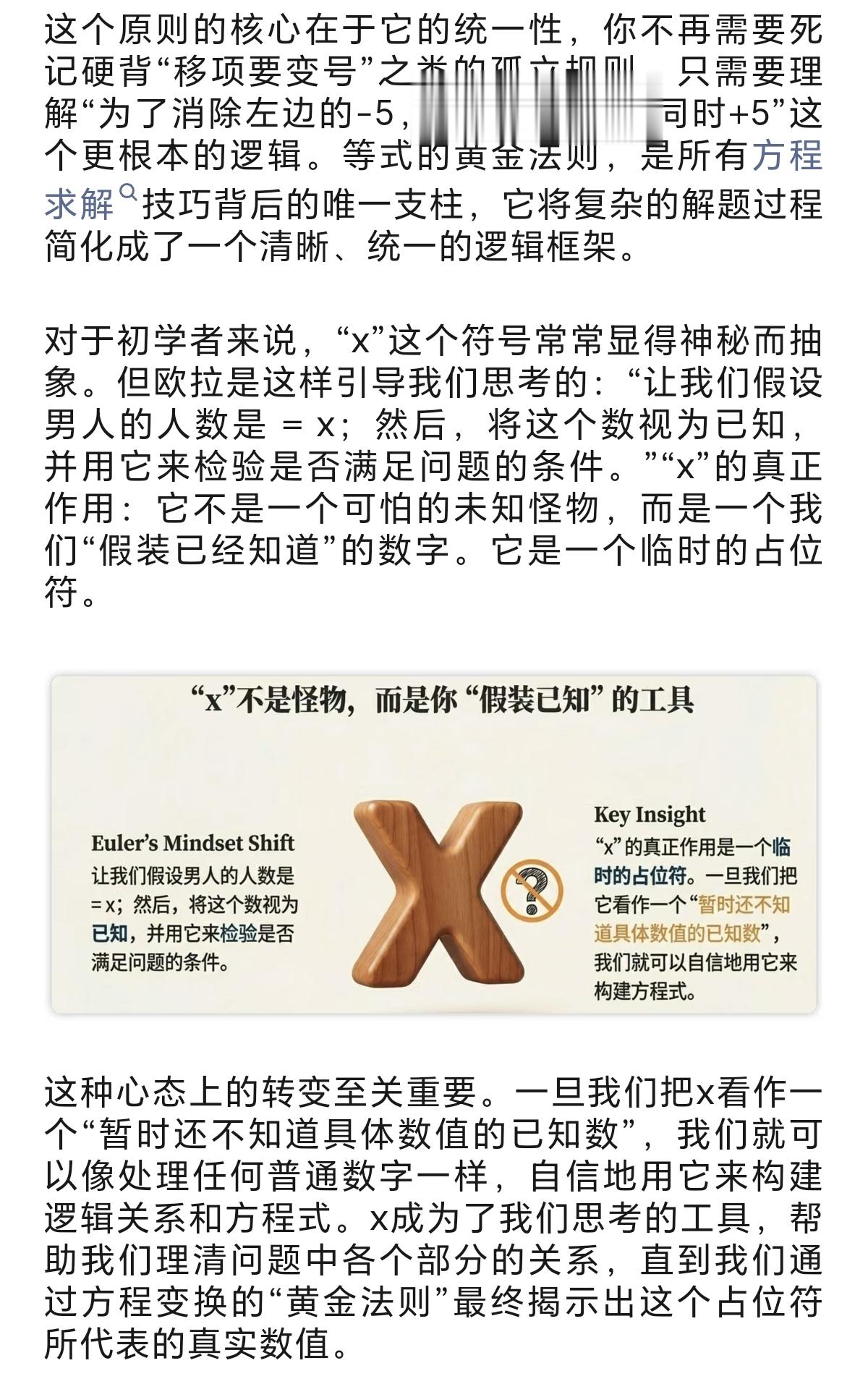 代数解题中最难的部分是什么?很多人会说是计算,但真正的难点在于“翻译”——将日常语言描述的问题,准确地转换成数学语言。让我们看看欧拉是如何解决这个问题的: