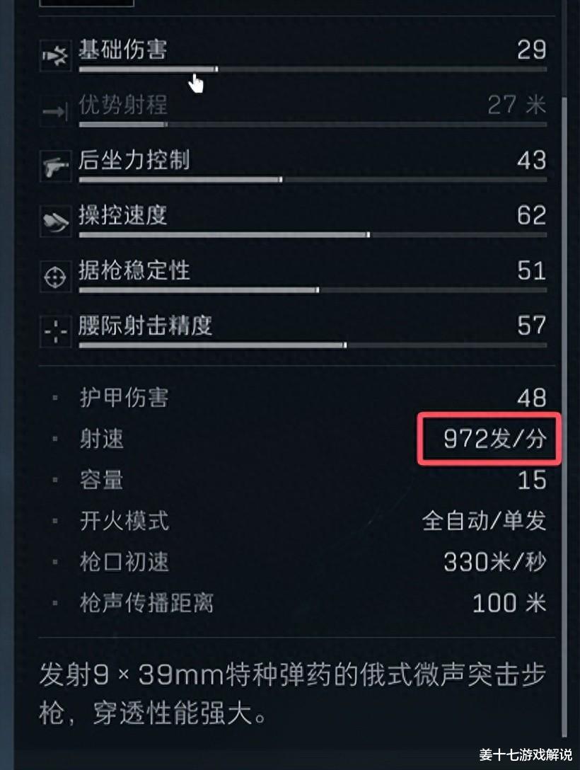 如果要评选一把能够快速清理玩家哈弗币的武器,我肯定把ASval这把突击步枪拿上台阶来说,理由无他,它的射速实在太快了,基础射速达到了972发每分钟,也就是说它打完一个弹匣只需要1.85秒左右,隔壁M14满改射速也不过只有2秒打完30发子弹,可见AS这把步枪的射速究竟能快到什么程度了。