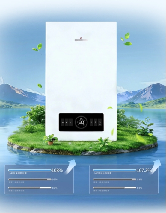 A2:确定了末端,接下来要为家庭采暖系统挑选热源。燃气壁挂炉是常见的家庭采暖系统热源设备,它通过燃烧天然气加热水,安装成本相对可控,而且能同时提供生活热水,适合燃气管道通达的住宅。不知如何挑选壁挂炉,可以选择小松鼠超薄全预混冷凝炉M8,采暖、热水双一级节能,采暖热效率高达108%,比普通壁挂炉节能省气约31%,冬天采暖更省气,四季热水都节能。