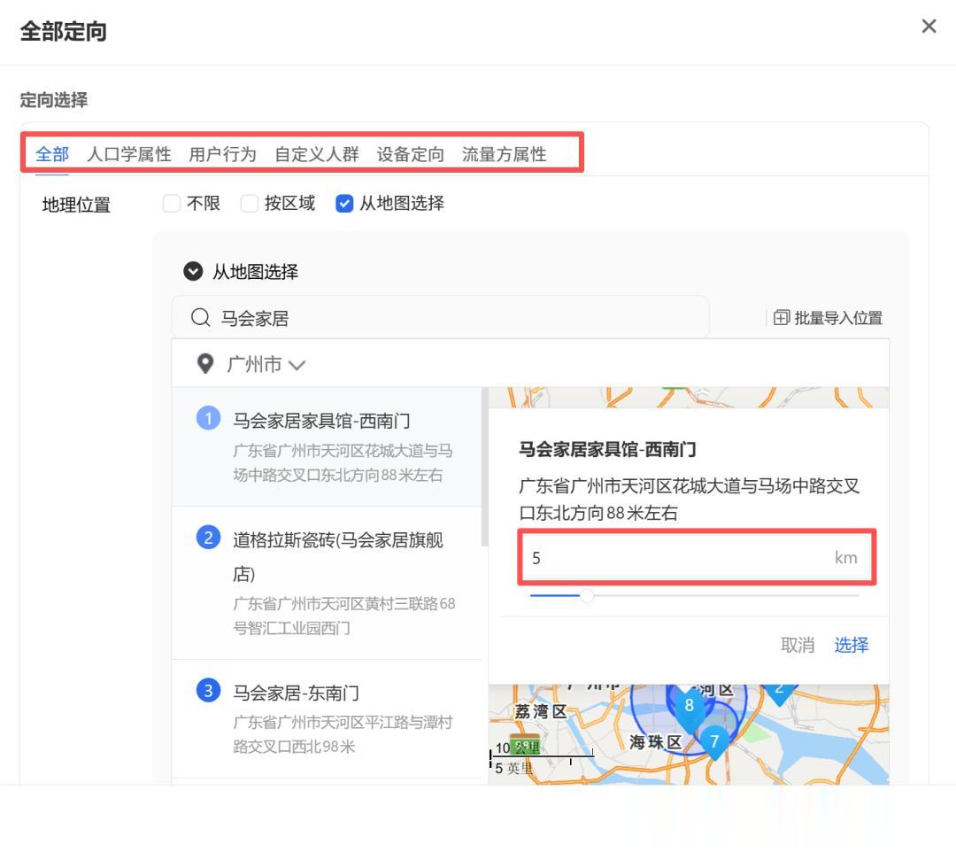家居门店服务半径多为 3-5 公里,定向操作如下: