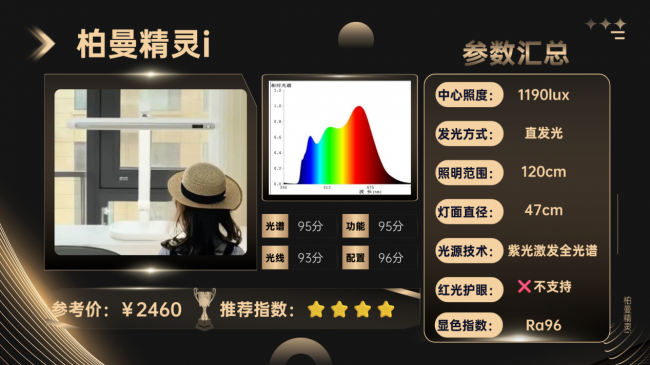 开学买儿童护眼灯哪种好?柏曼精灵i在照明表现上,它配备了一个47cm的大发光面,配合直发光技术,能轻松覆盖120cm的桌面,把整个学习区域都照亮。中心照度达到1190lux,亮度完全足够日常读写。显色指数Ra96,在还原物体色彩方面表现不错,处于中等偏上的水平。功能体验是它的一大加分项,支持语音调光,操作很方便,还有恒定照度功能,能自动维持舒适的亮度。灯上的数显屏可以让你实时看到当前的亮度信息,一目了然。