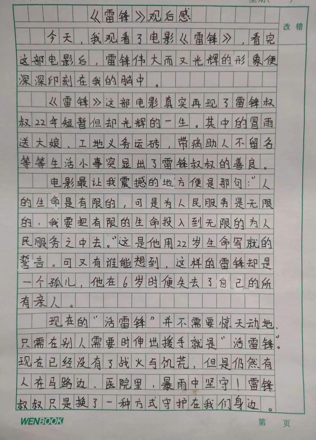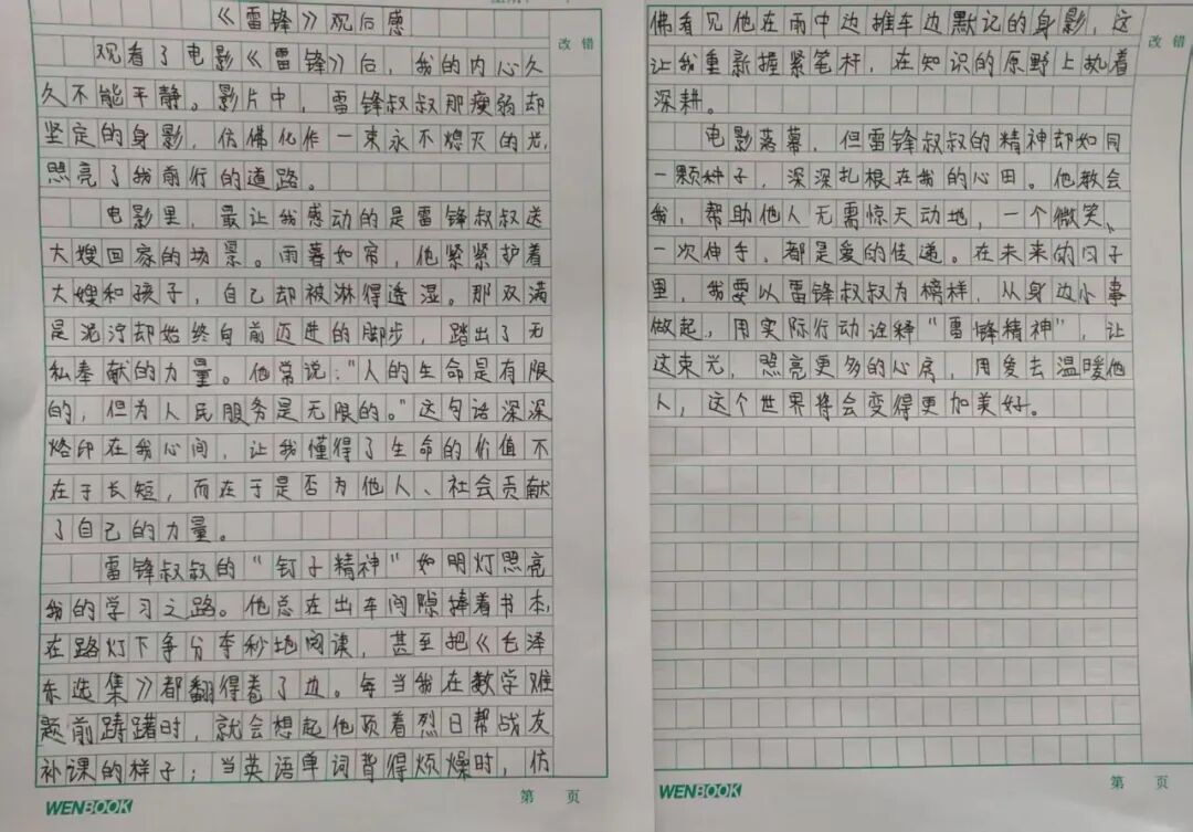 为让同学们深刻理解雷锋精神的核心内涵,学校组织同学们观看雷锋主题电影。影片中,雷锋叔叔爱岗敬业、乐于助人、甘于奉献的感人事迹,深深打动了每一位同学。观影结束后,同学们认真撰写观后感,用质朴的文字记录内心触动,抒发对雷锋叔叔的崇敬之情,表达争做新时代小雷锋的坚定决心。