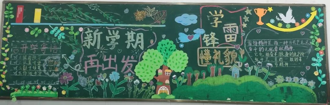 各班积极创办“学雷锋”主题黑板报。同学们精心排版、认真书写、创意绘画,将雷锋故事、雷锋语录、学习感悟融入其中,一幅幅色彩鲜明、内容丰富的黑板报,成为校园里一道亮丽的风景线,不仅美化了班级环境,更让雷锋精神走进教室、浸润心灵。