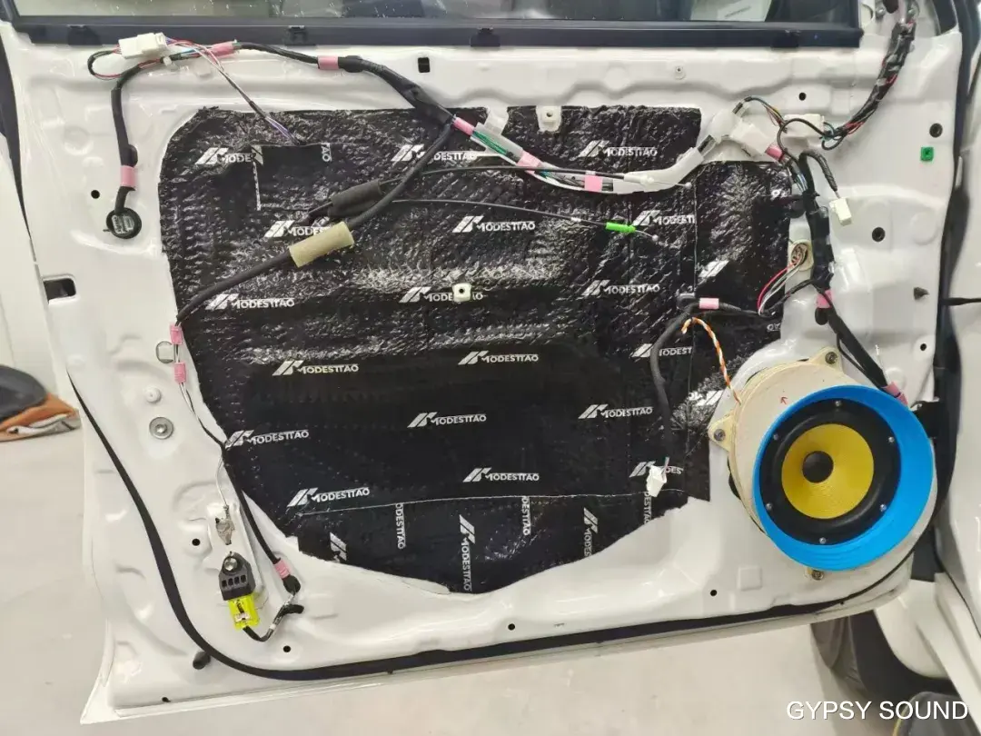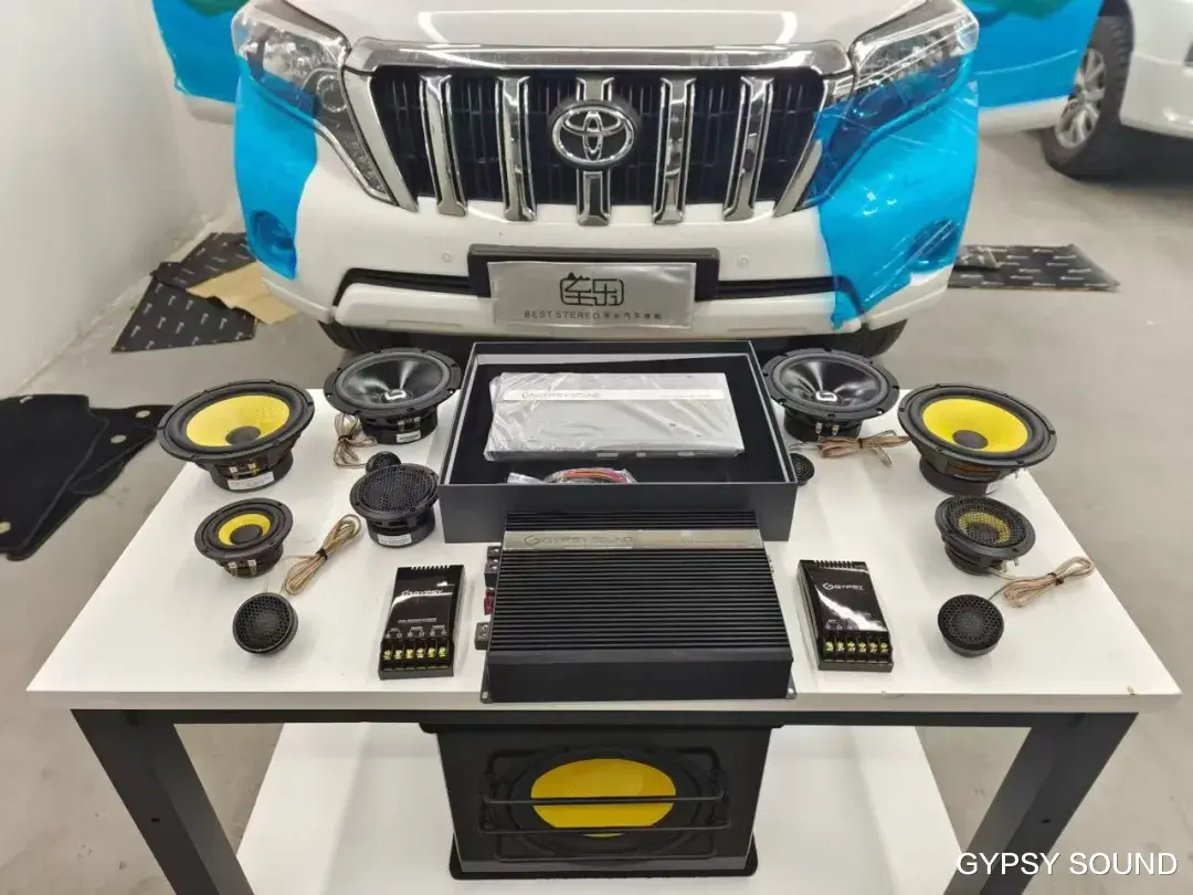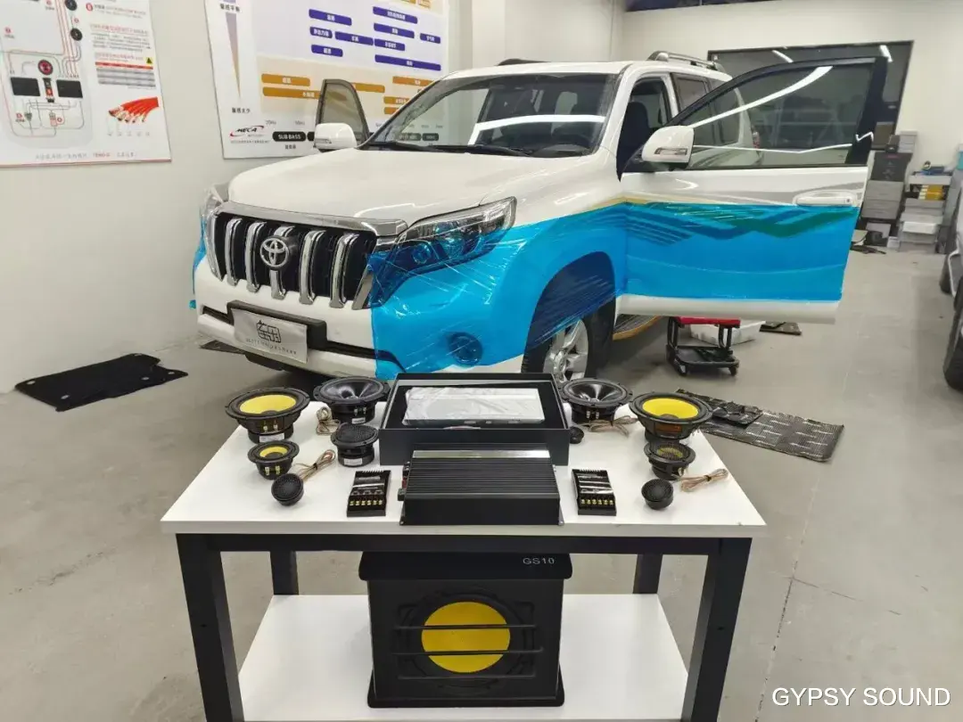 原车音响难以呈现音乐本身的丰富动态,蓝牙传输音质较差,且声场定位不够精准,加上普拉多车身较大,行驶中的风噪、胎噪会进一步影响聆听体验,让本就有限的音质雪上加霜。因此,车主通过体验试听,最终选择了全套吉普赛之声音响方案。