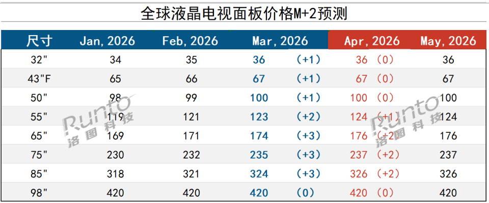 2026年3月液晶电视面板市场特点及4月预测