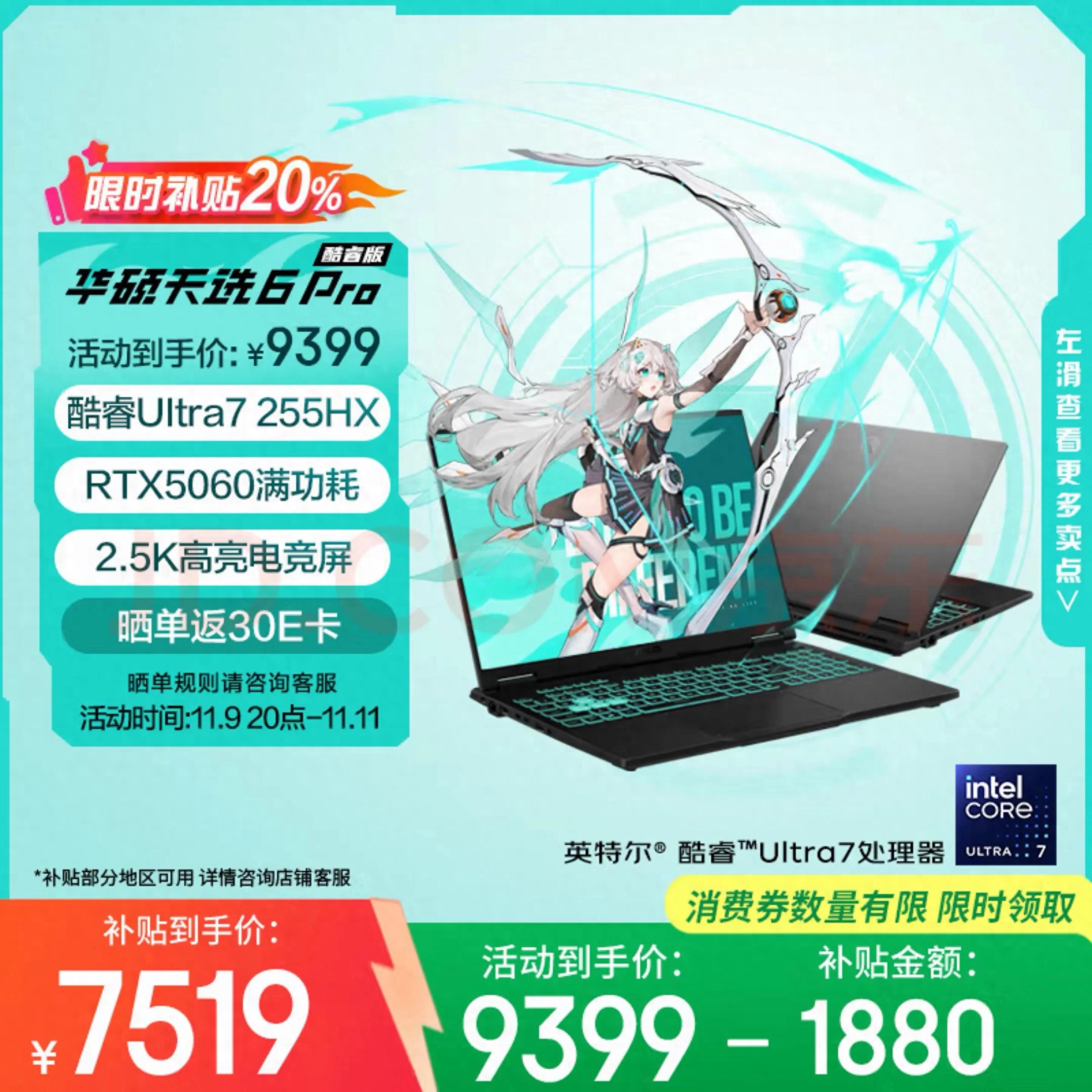 一年一度的双十一已经进入最后倒计时,不过就在大家以为好价都已尘埃落定时,一线大厂华硕突然“掀桌子”了,备受欢迎的华硕天选6 Pro系列开启了一波大降价,搭载全新RTX 50系显卡的三款游戏本最高降幅接近2000元,堪称等等党的史诗级胜利,还没入手或者近期想换新的朋友们,可千万不要错过这个机会了,下面给大家简单介绍这三款游戏本,大家可以根据价格、配置选择合适的那一款。