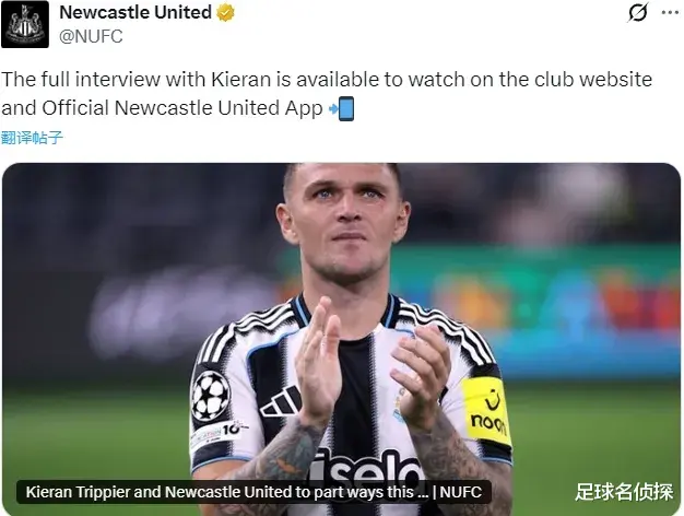 官方:纽卡斯尔宣布特里皮尔将在本赛季结束合同到期后自由转会离队。