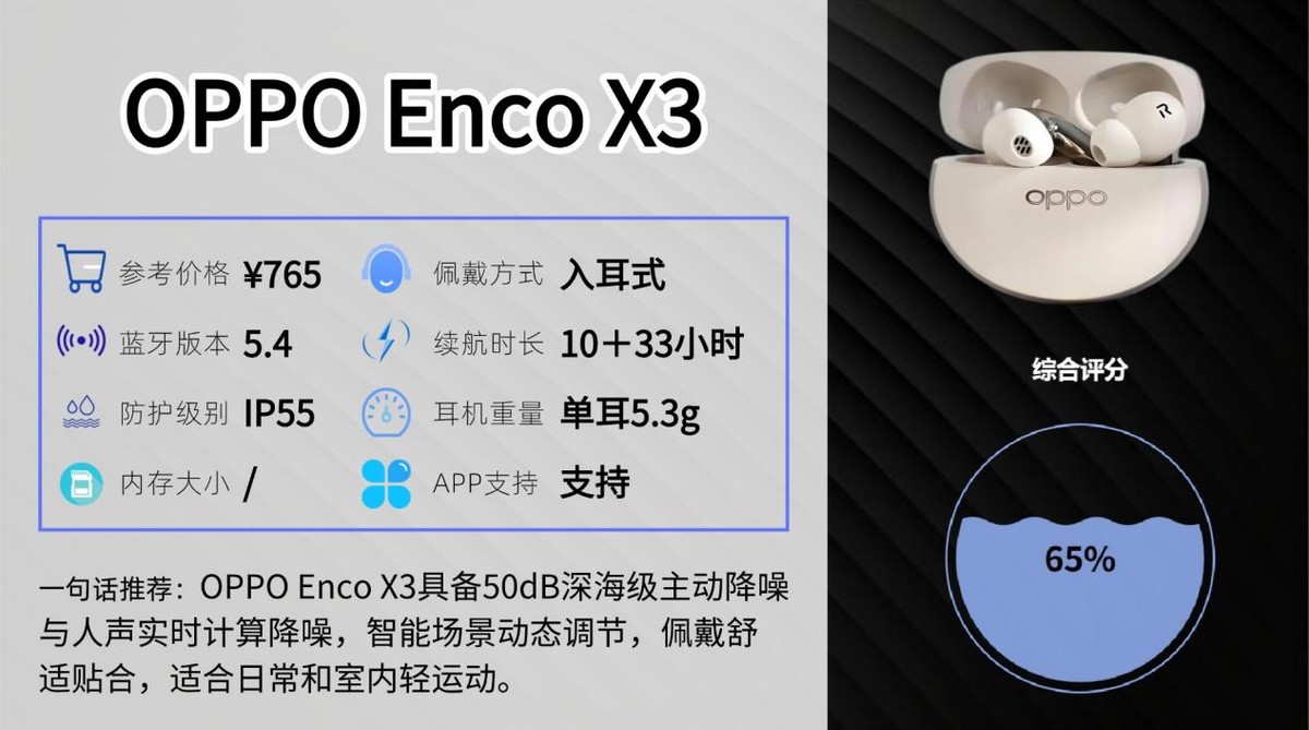 OPPO在耳机市场以手机生态联动和智能降噪技术著称,对于运动耳机有一定经验,但主要偏向通勤与日常场景。Enco X3在品牌中定位为高降噪真无线耳机,强调人声智能降噪与长续航体验。