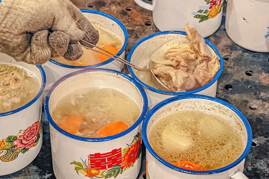 “迷你版清炖羊肉”便是如此。将精选的羊肉与胡萝卜等食材一同放入老旧的搪瓷缸子中,置于炭火之上缓缓炖煮。汤汁鲜美,肉质酥烂,不含繁复的调味品,仅保留肉质最纯粹的香气,成为南疆街头一道温馨的风景线。