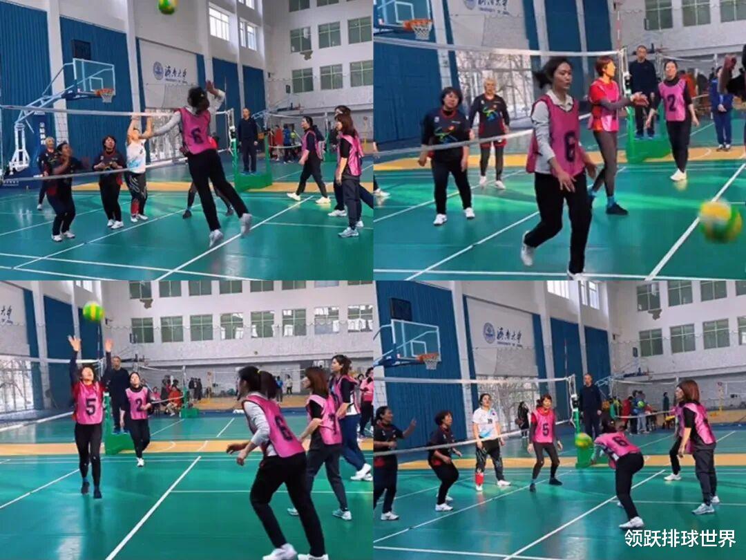 王梦洁她并非以嘉宾身份观赛,而是身披6号马甲上阵、参与比赛,更令人惊喜的是,这次王梦洁并未担任她熟悉的自由人角色,而是以主攻手的身份登场!短暂亮相比赛中,她数次起跳扣杀,动作干净利落、节奏流畅,一改往日“防守专家”的定位,带来全新视觉冲击,虽然是气排球场地,但她在网前的爆发力和节奏感依旧令人惊艳。