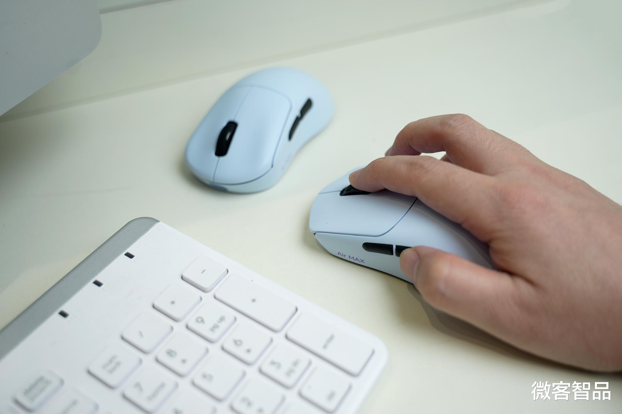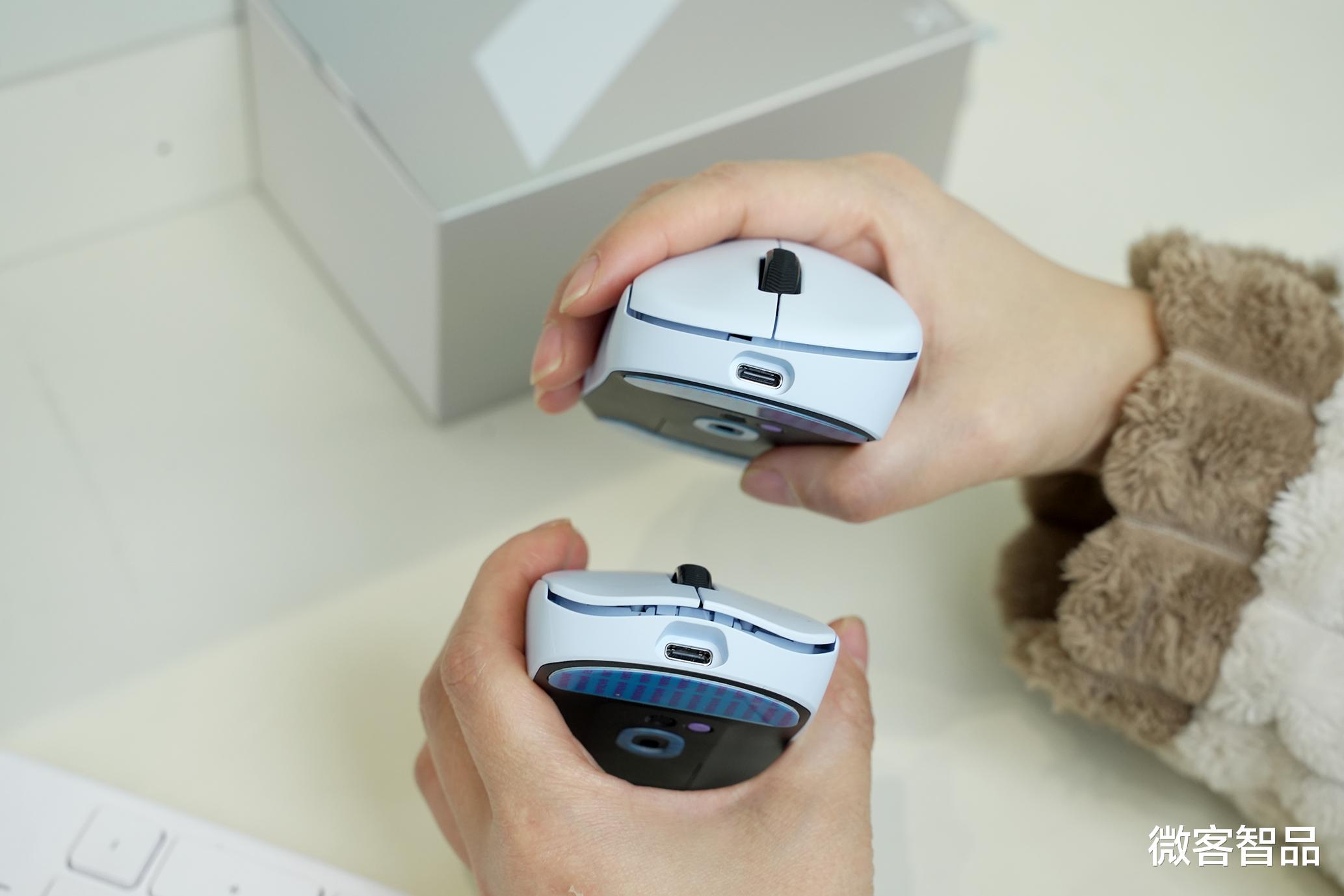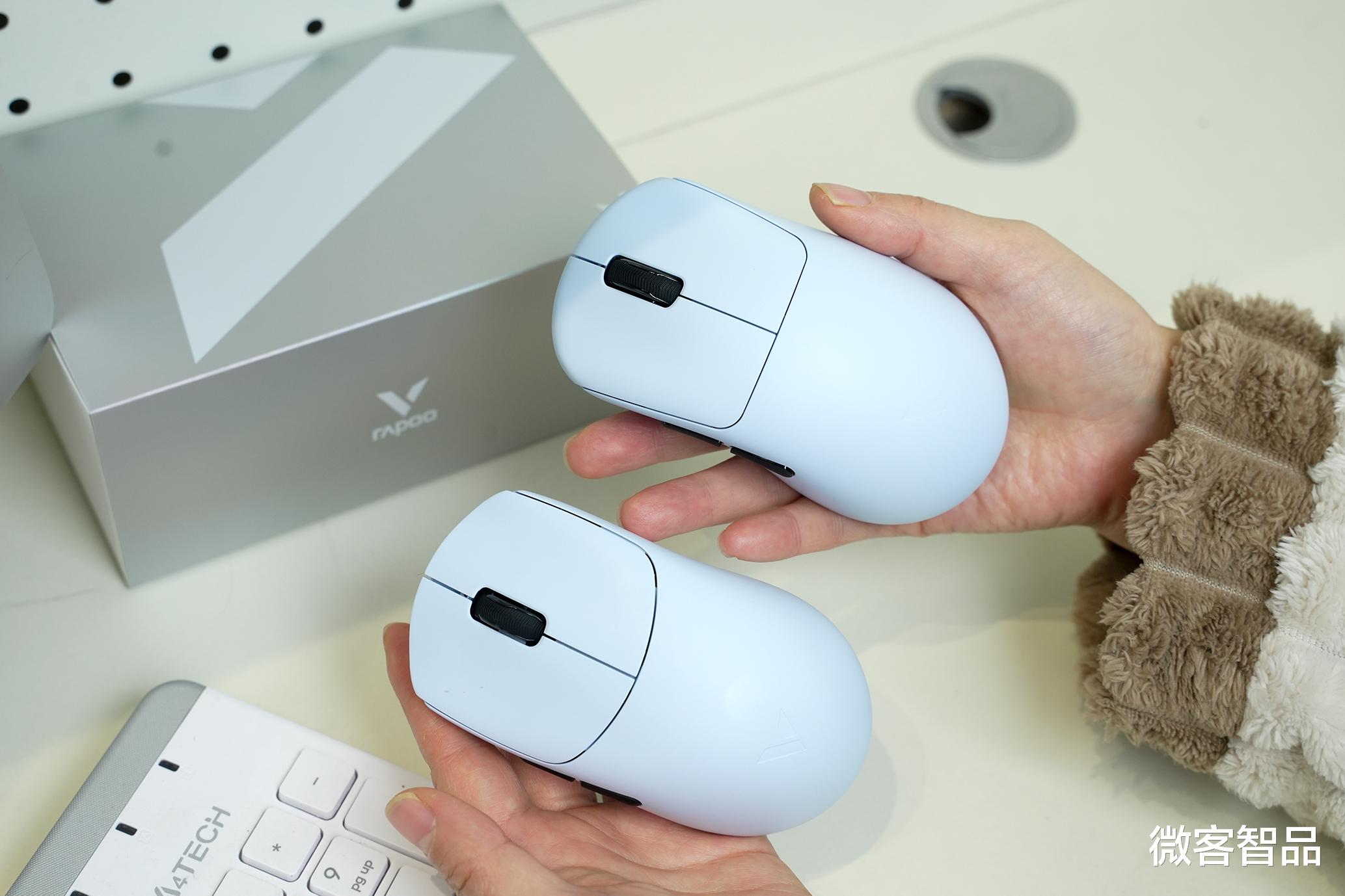 外观层面,两款鼠标定位清晰、设计泾渭分明,均采用亲肤防滑涂层,触感温润不沾指纹,长时间握持出汗也不打滑,兼顾质感与实用性。