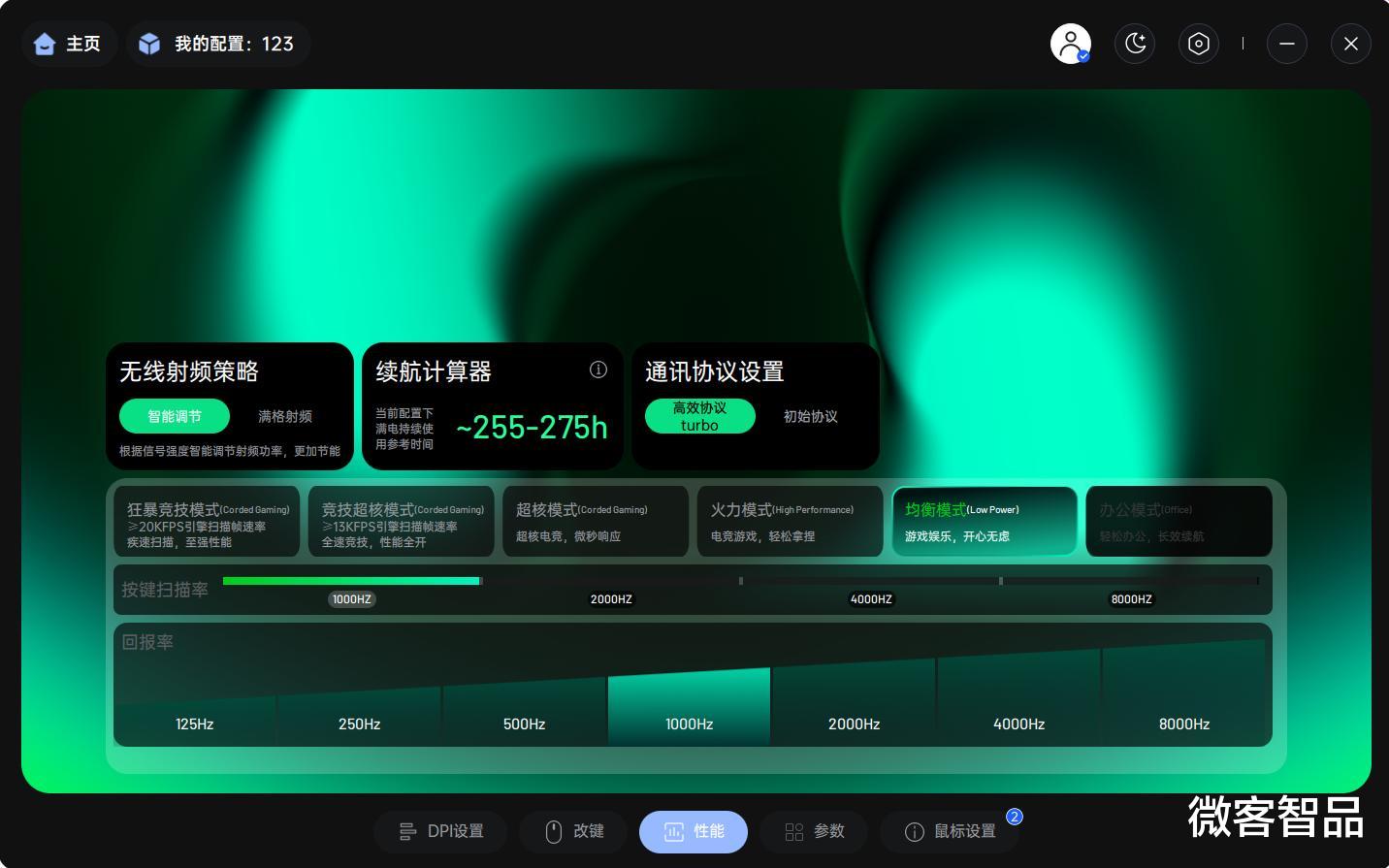 驱动层面搭载全新A HUB整合驱动,兼容Windows、macOS双平台,还支持网页驱动,实现三平台互通。内置6档性能模式(狂暴竞技/竞技超核/超核/火力/均衡/办公),可根据场景自动切换;支持按键自定义、消抖调节、配置文件云存储,还能实现应用跟随切换,打开游戏自动切竞技模式,办公自动切省电模式,傻瓜式操作适配全场景需求。
