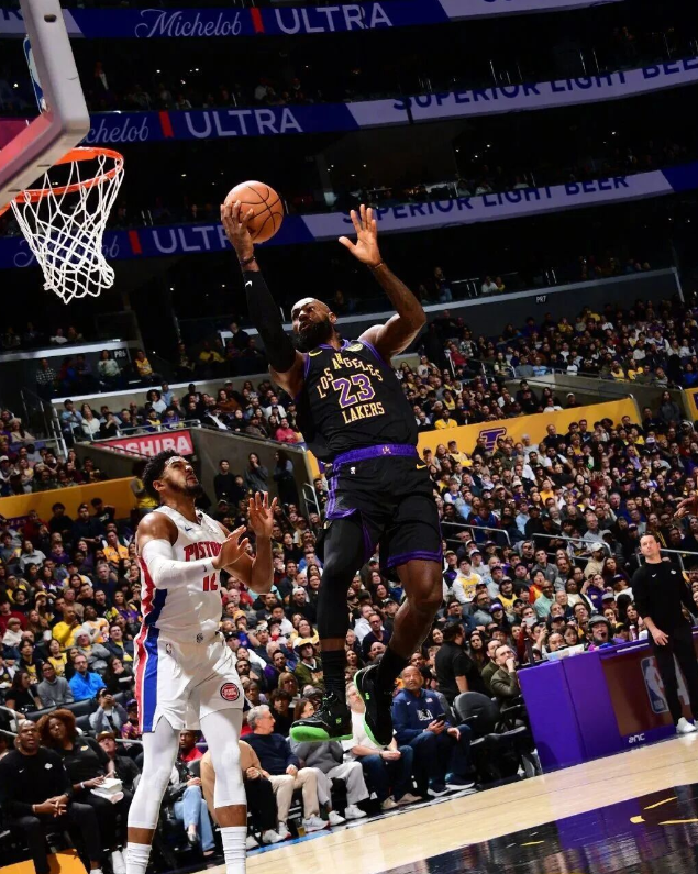 勒布朗用强势的身体对抗和超卓的速率冲垮了活塞。