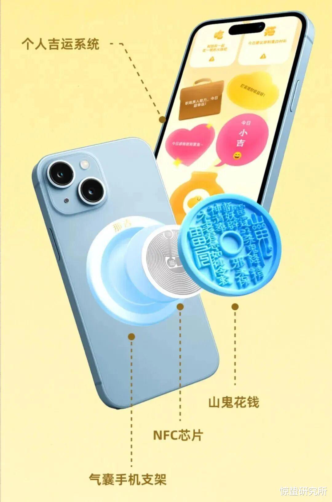 而据惊蛰研究所观察,目前除了利用生成式AI打造的占卜APP外,还出现了一些兼具实用性和趣味性的“占卜”产品。例如有手机支架产品基于“占卜”大模型,内嵌了NFC芯片,当手机感应到NFC芯片,会自动跳转到程序界面,引导用户绑定个人信息,然后为用户生成五行命盘以及专属的每日运势指南。