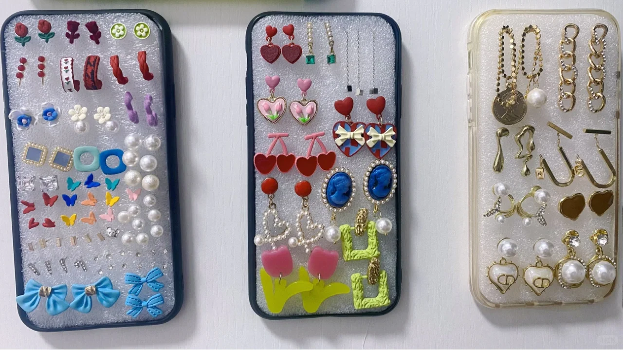 我们网购新手机壳的时候,都会得到一个跟手机壳差不多大的防滑海绵。我们可以把防滑海绵塞到旧手机盒里,然后用来收纳你的耳饰。