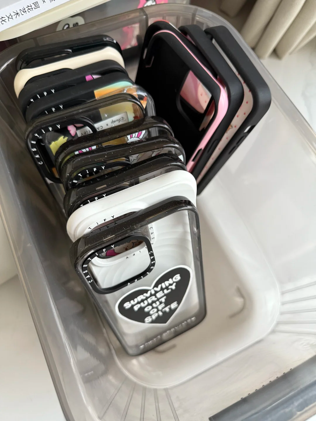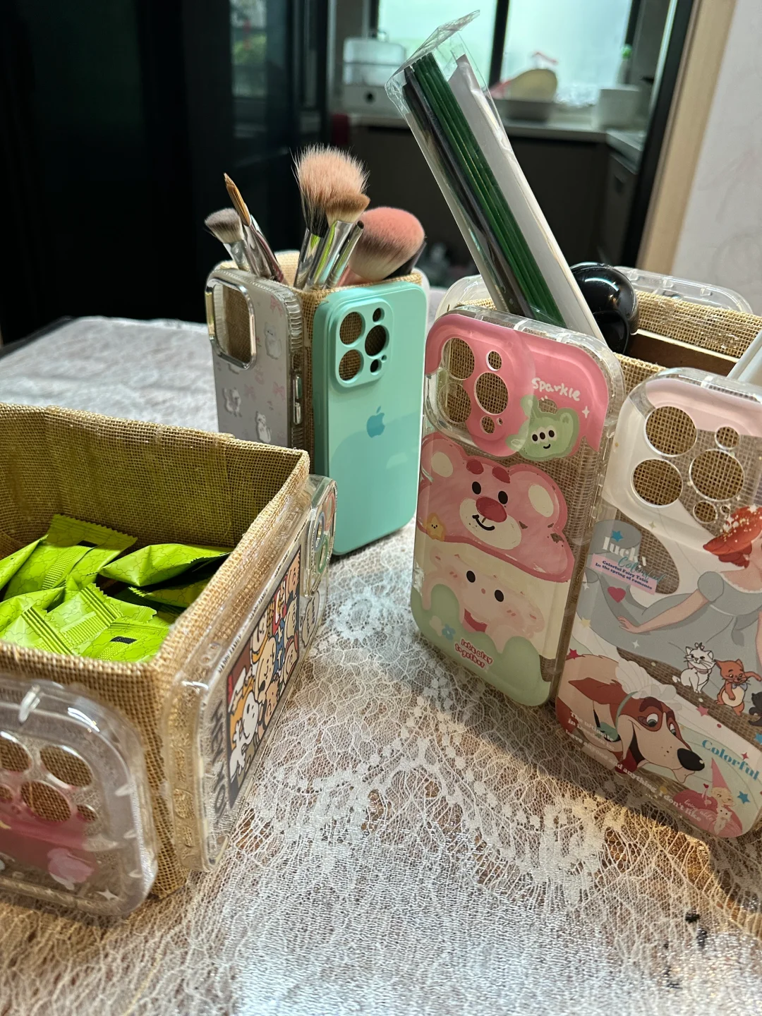 然后再找出一个手机壳,当它的底座。于是你就得到了一个自制且有创意的桌面收纳盒,