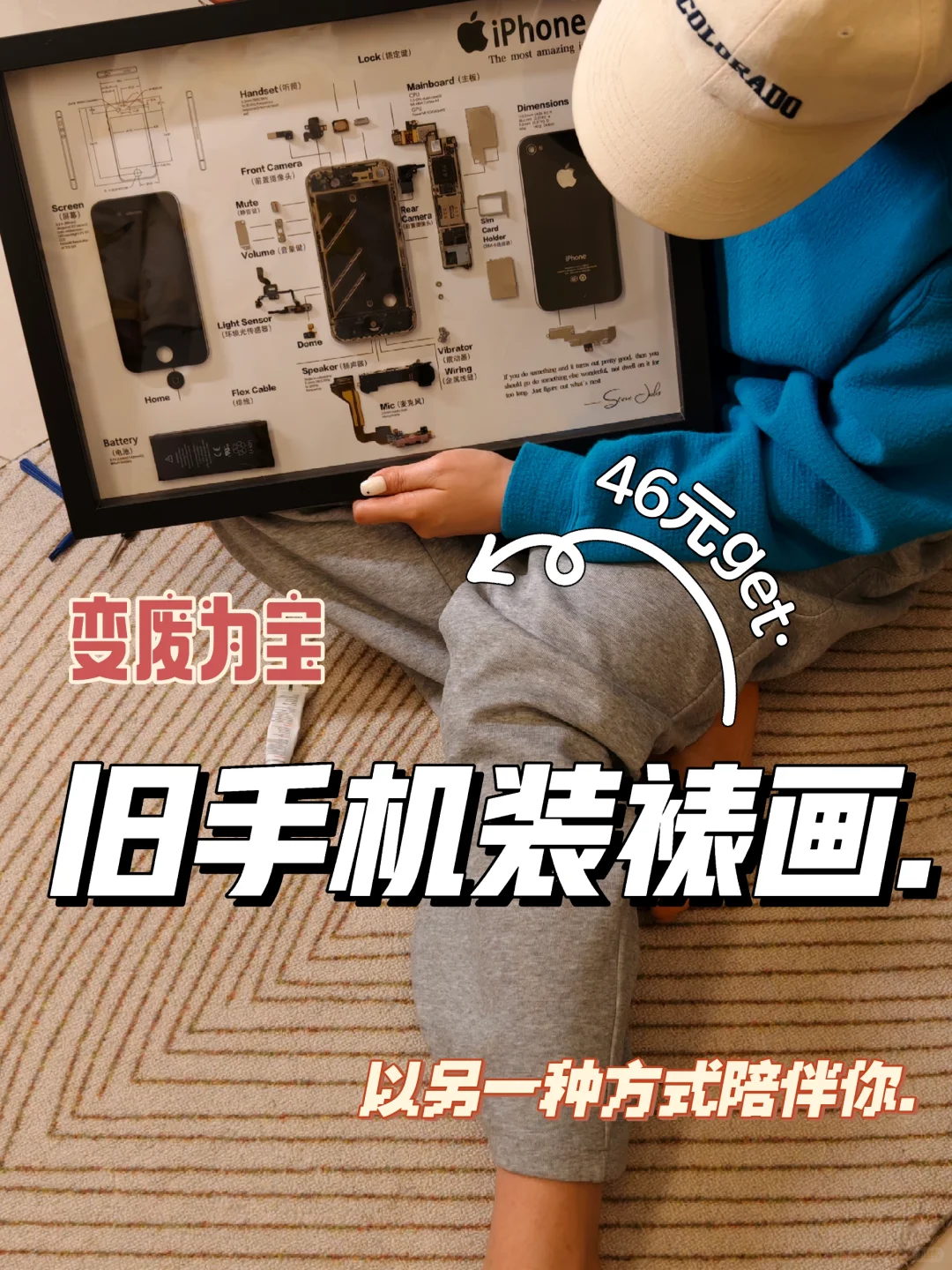 如果是自己觉得有意义的手机或者配件,也可以把它们封存到相框里,充满机械感,也给自己留一份纪念。