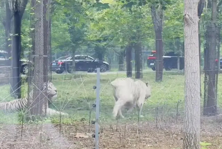 就在他们上车瞬间,其中一只老虎竟沿护栏跟至车旁,在驾驶室一侧窗外停留张望,场面一度令人窒息。最终,在工作车辆的陪同下,所有游客安全驶离猛兽区。