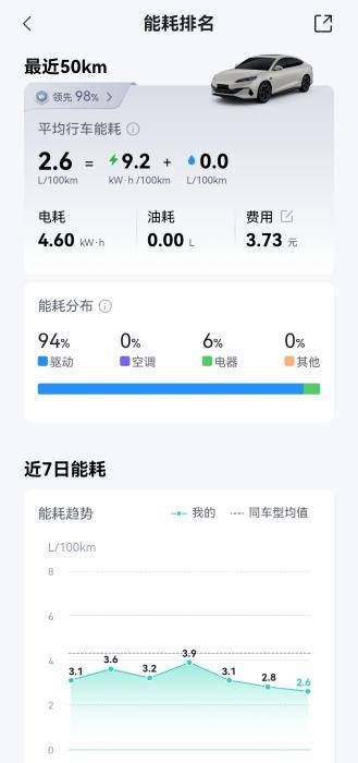 对于必须用油的场景比亚迪也给出了答案,OTA后百公里2.6L油耗,加油也不心疼。即便跑长途需要烧油,比亚迪插混同样底气十足。第五代DM技术通过OTA升级,百公里亏电油耗已优化至2.6L,再创全球插混油耗新低。这意味着,即使在亏电状态下行驶,每公里油费成本也仅0.23元左右。
