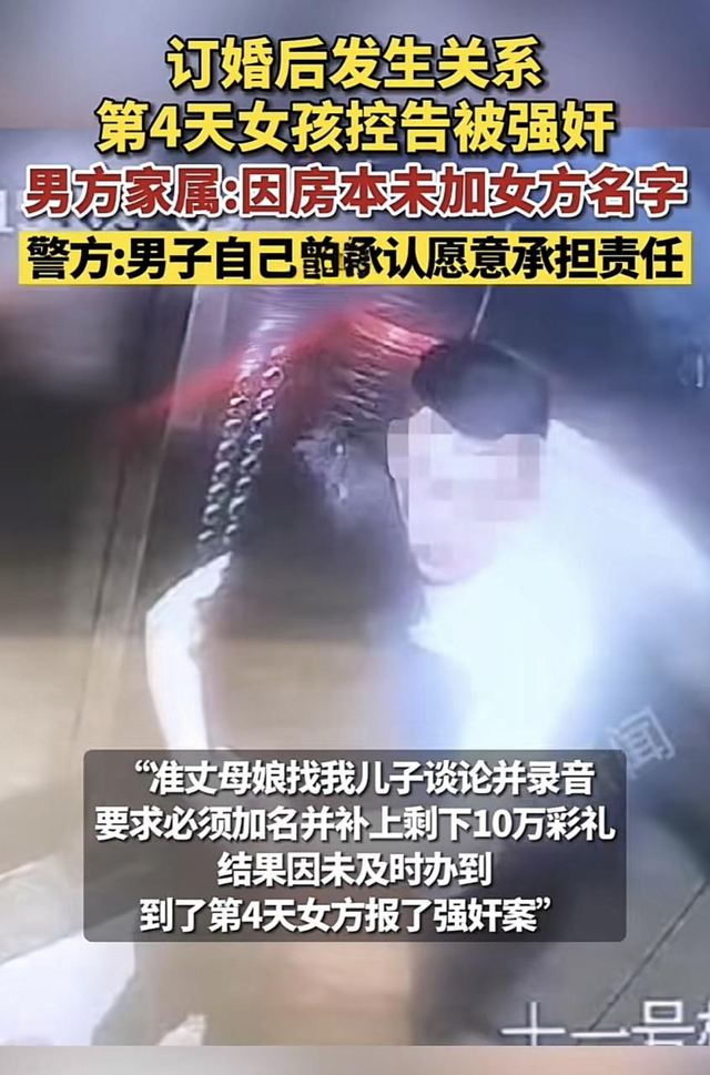 郑女士反复强调,双方已谈婚论嫁,“感情不错”,矛盾源于女方家属的经济诉求——要求在房产证上加名及追加彩礼。她称,妥协加名是迫于“对方要抓人”的压力,但担忧“这样的媳妇会闹事”。对于“强奸”指控,她质疑:“订婚关系中的性行为如何构成暴力胁迫?批捕决定早于DNA鉴定结果,程序是否合规?”