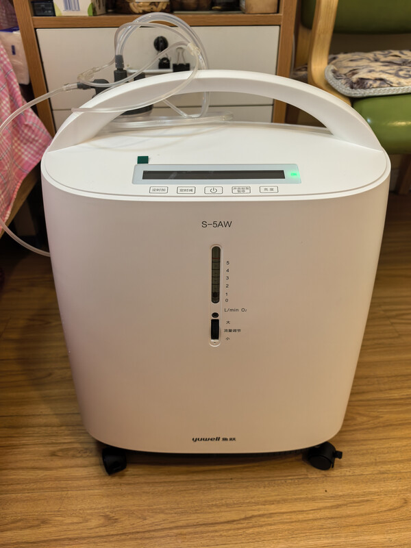 它的这个制氧机型号,属于欧姆龙,底部带滚轮设计,平移的时候不用整台搬动,推到需要的位置还行,操控面板放在机身顶部,不用弯腰就能操作,手感中规中矩。技术上采用了多层过滤结构,层层滤除空气中的杂质,让输出的氧流更干净。但连续开启四个小时以上,氧气浓度会慢慢往下掉,氧气浓度不够高,没法维持一开始的输出水平。