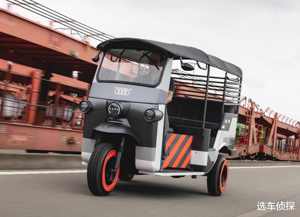 如果只看外形,很难把这辆三轮三蹦子和奥迪联系在一起。这款挂着奥迪LOGO的新车,底子其实是1979年生产的印度三轮车,结构简单、工艺粗糙,在印度当地服役了几十年,用于拉人载货,这也是印度常见的交通工具。