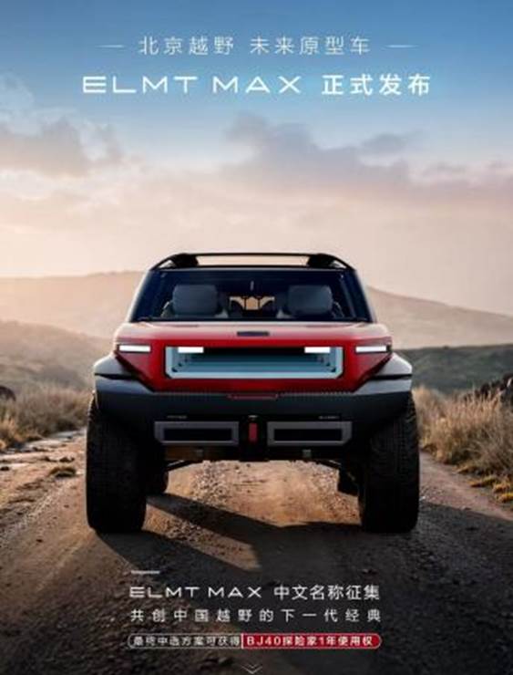即刻起至2026年3月20日,北京越野发起了ELMT Max未来原型车中文名称的共创活动,所有人均可参与,最终中选方案可获得BJ40探险家一年使用权。