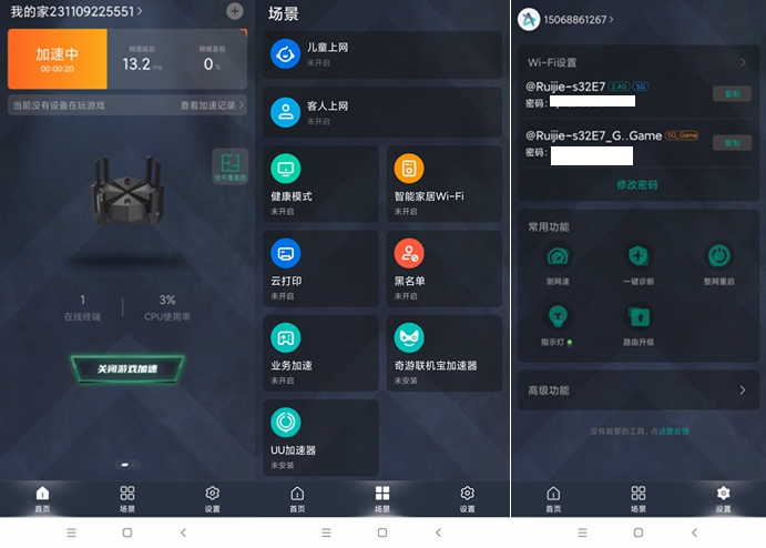 而且还可以在锐捷星曜APP里设定游戏加速模式,集中优先使用网络流量,避免别的设备或者行为来抢网速。