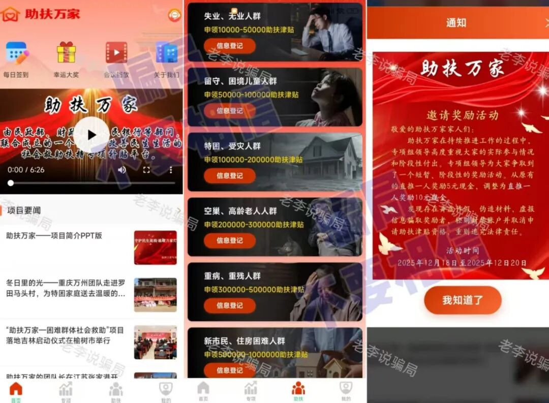谎称“国家项目”,以“帮扶”名义吸引参与者,针对社会上各种类型的“困难群众”,设置不同金额的“助扶津贴”,完全符合“困难人群”当下急于解困的心理,属于非常有针对性的骗局。