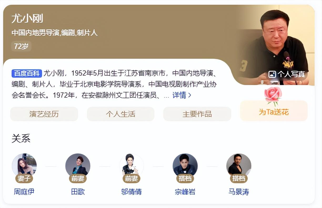 现如今64岁的尤小刚已经做了父亲,而田歌却单身至今。