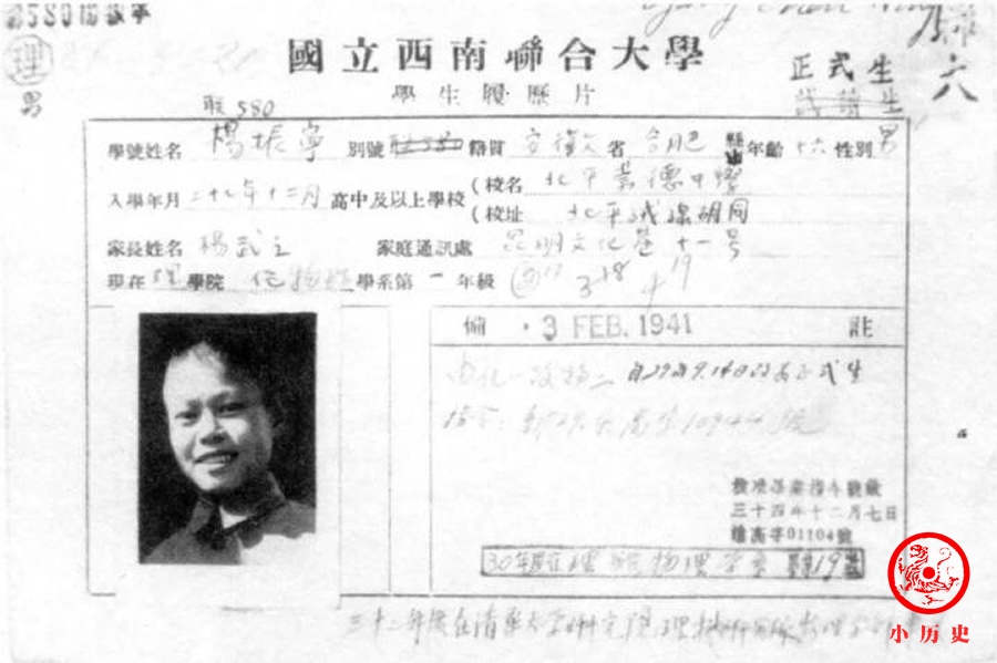 杨振宁的西南联合大学学籍卡。
