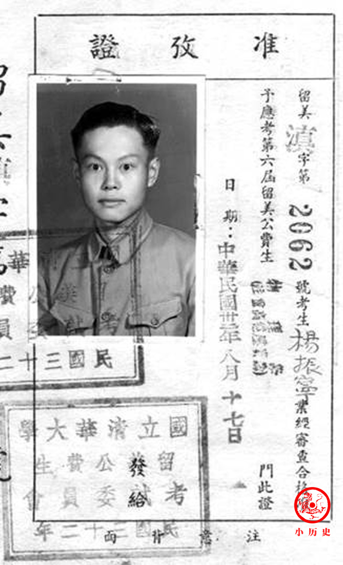 杨振宁的留美公费生准考证。