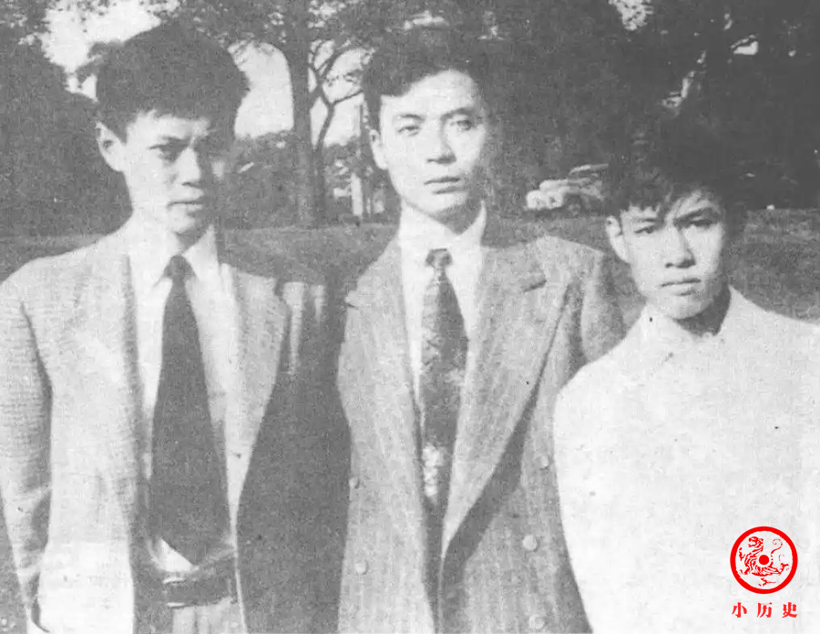 1949年在芝加哥大学,杨振宁与邓稼先(中)、杨振平(右一)。
