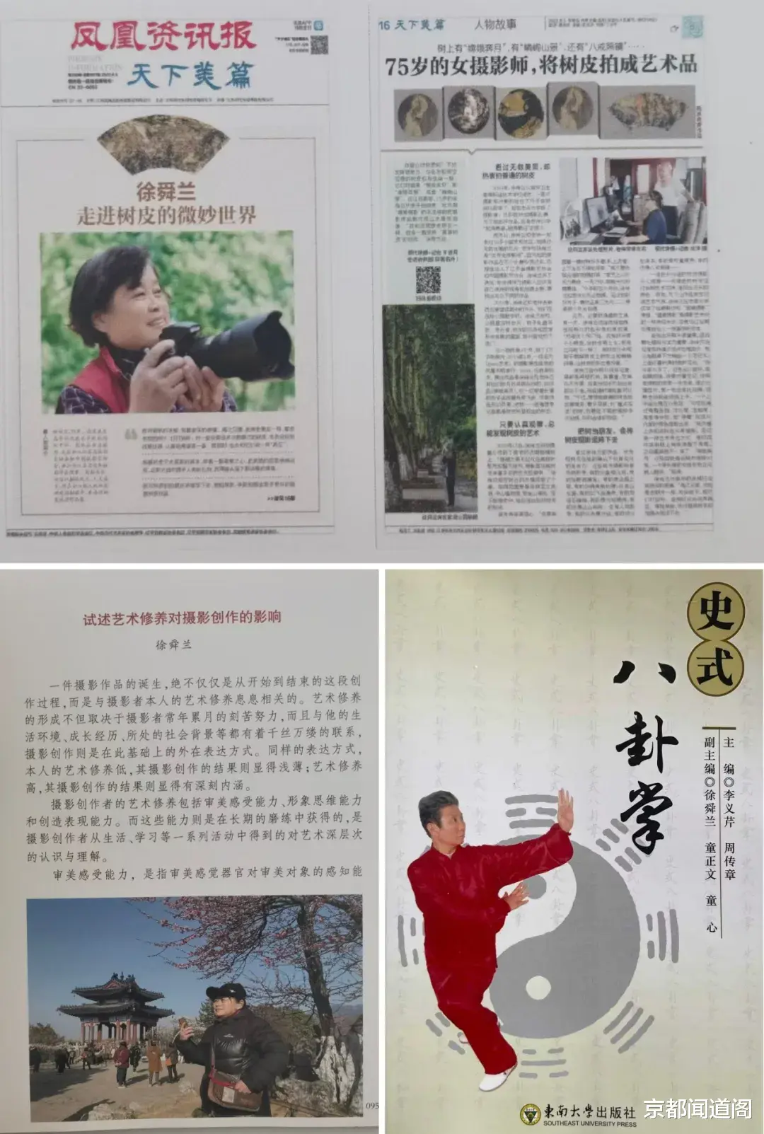 从退休医务工作者到中国摄影家协会会员,从八卦掌爱好者到教材主编,徐舜兰用热爱与执着,在退休生活中开辟出一片属于自己的天地。她的“画意树皮”摄影,让平凡的自然纹理绽放出艺术之光;她主编的《史式八卦掌》教材,让传统武术文化得以传承;她牵头成立的摄影组织,让更多老年人感受到摄影的快乐。如今,即将成入耄耋老人的徐舜兰依然保持着对生活的热爱与探索的勇气,继续用镜头捕捉美好,用行动传递温暖,在岁月中书写着属于自己的精彩篇章,也为更多老年人树立了执着追梦的榜样。