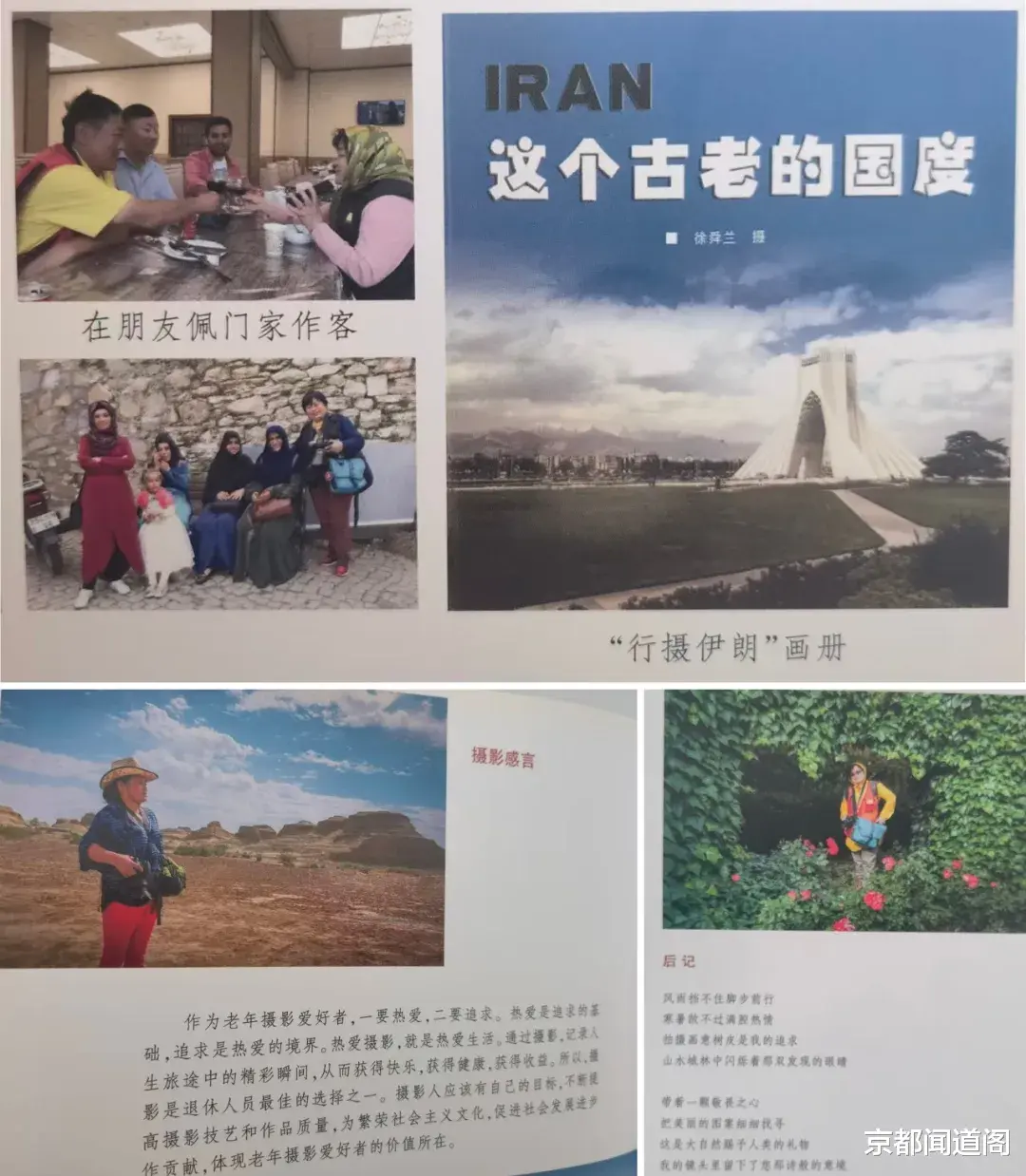 “摄影不仅是记录,更是表达,是与世界对话的一种方式。”抱着这样的信念,徐舜兰开始将理论付诸实践,足迹遍布南京的公园与街巷,拍摄了无数壮美的风光作品,渐渐在摄影领域崭露头角。2017年9月,徐瞬兰在南京成功举办“行摄伊朗”个人影展,《中国摄影报》作了报道。她不仅担任了江苏省老年摄影学会理事、副秘书长,艺术专业委员会副主任委员,鲁迅园摄影沙龙主持人,而且先后加入江苏省摄影家协会、中国摄影著作权协会,还成为中国摄影家协会会员。